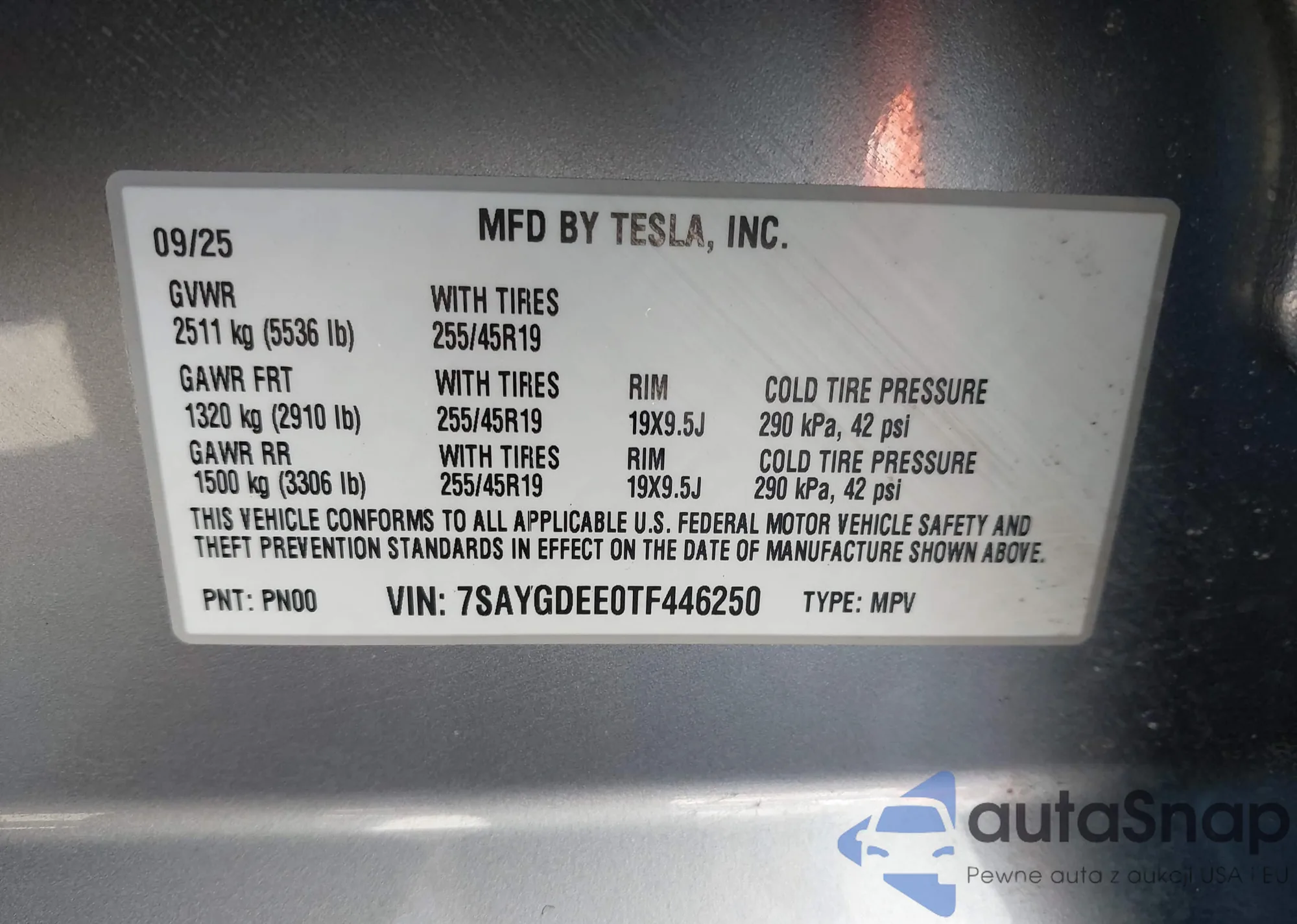 VIN: 7SAYGDEE0TF446250
