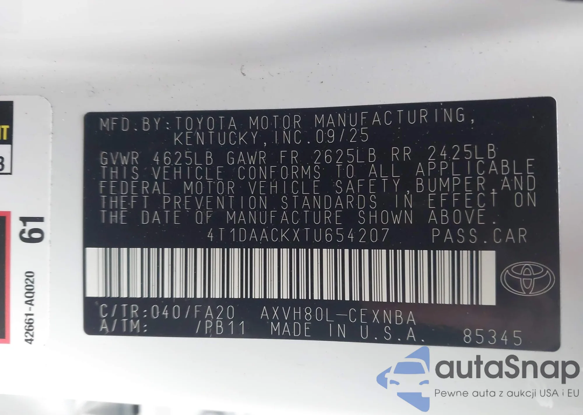VIN: 4T1DAACKXTU654207