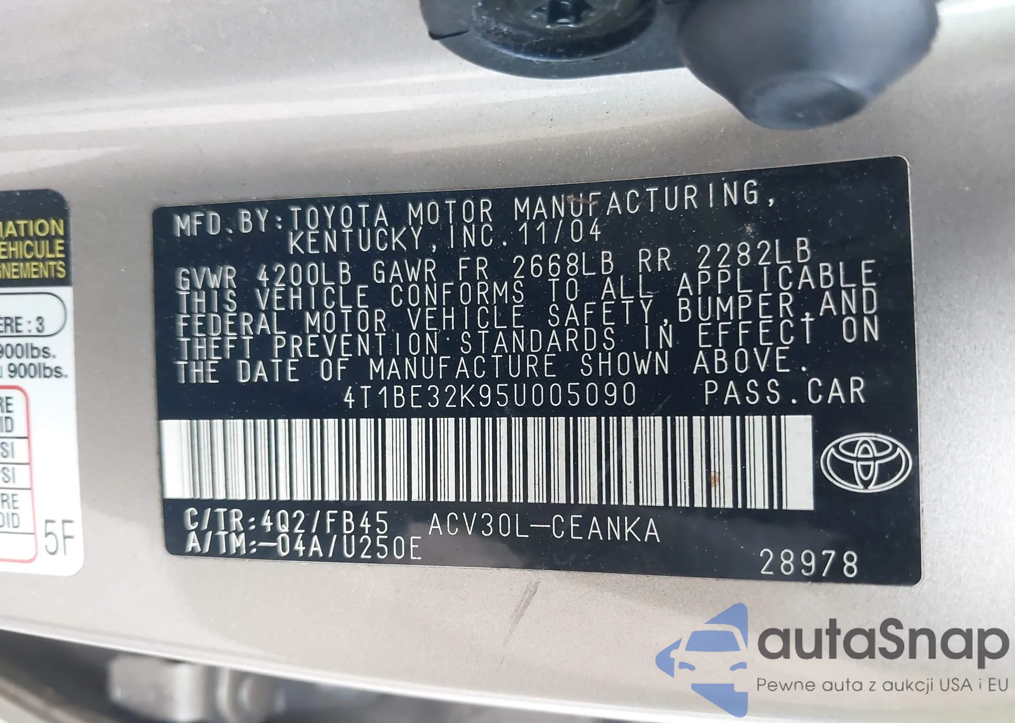 - VIN 4T1BE32K95U005090
