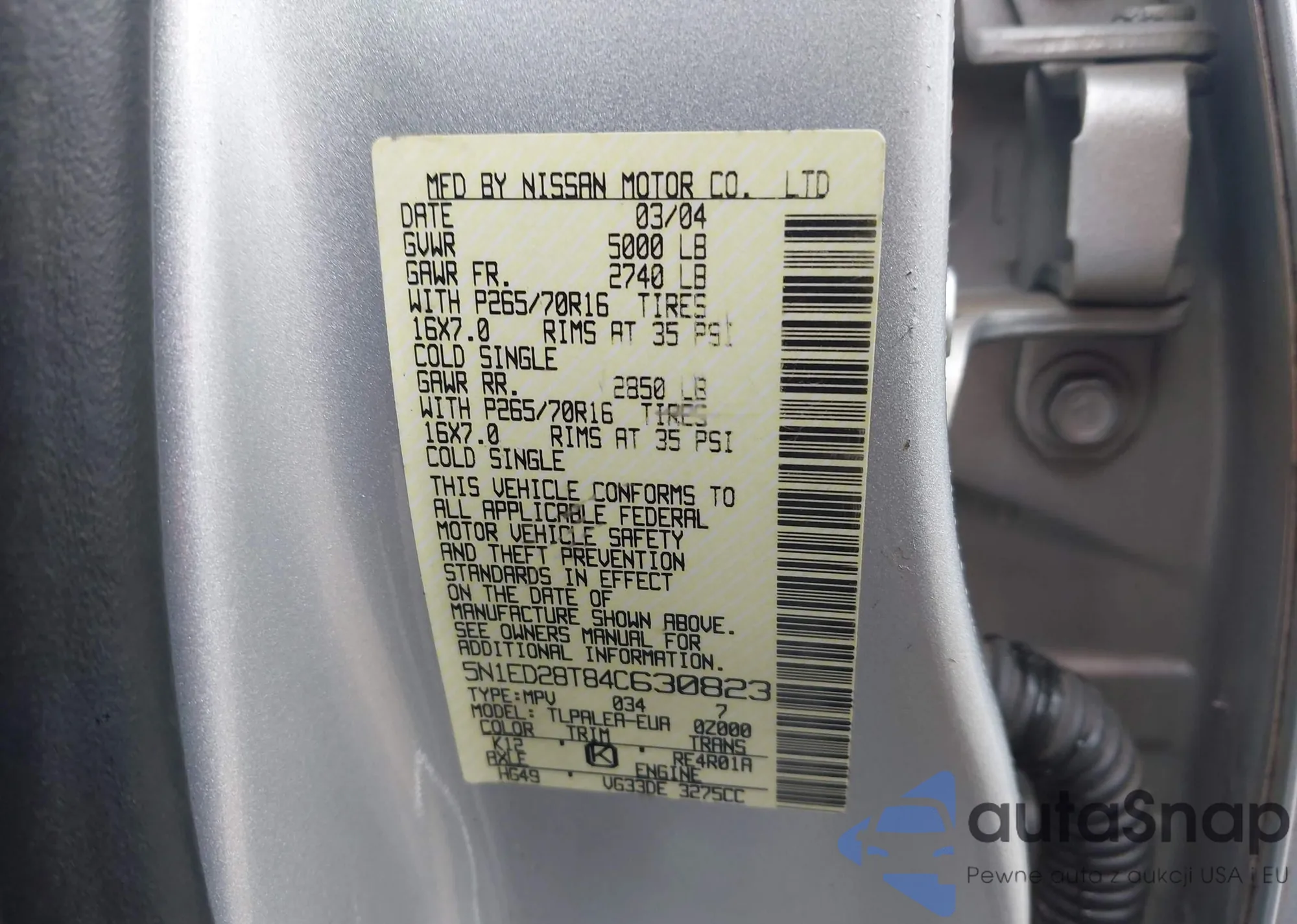 - VIN 5N1ED28T84C630823