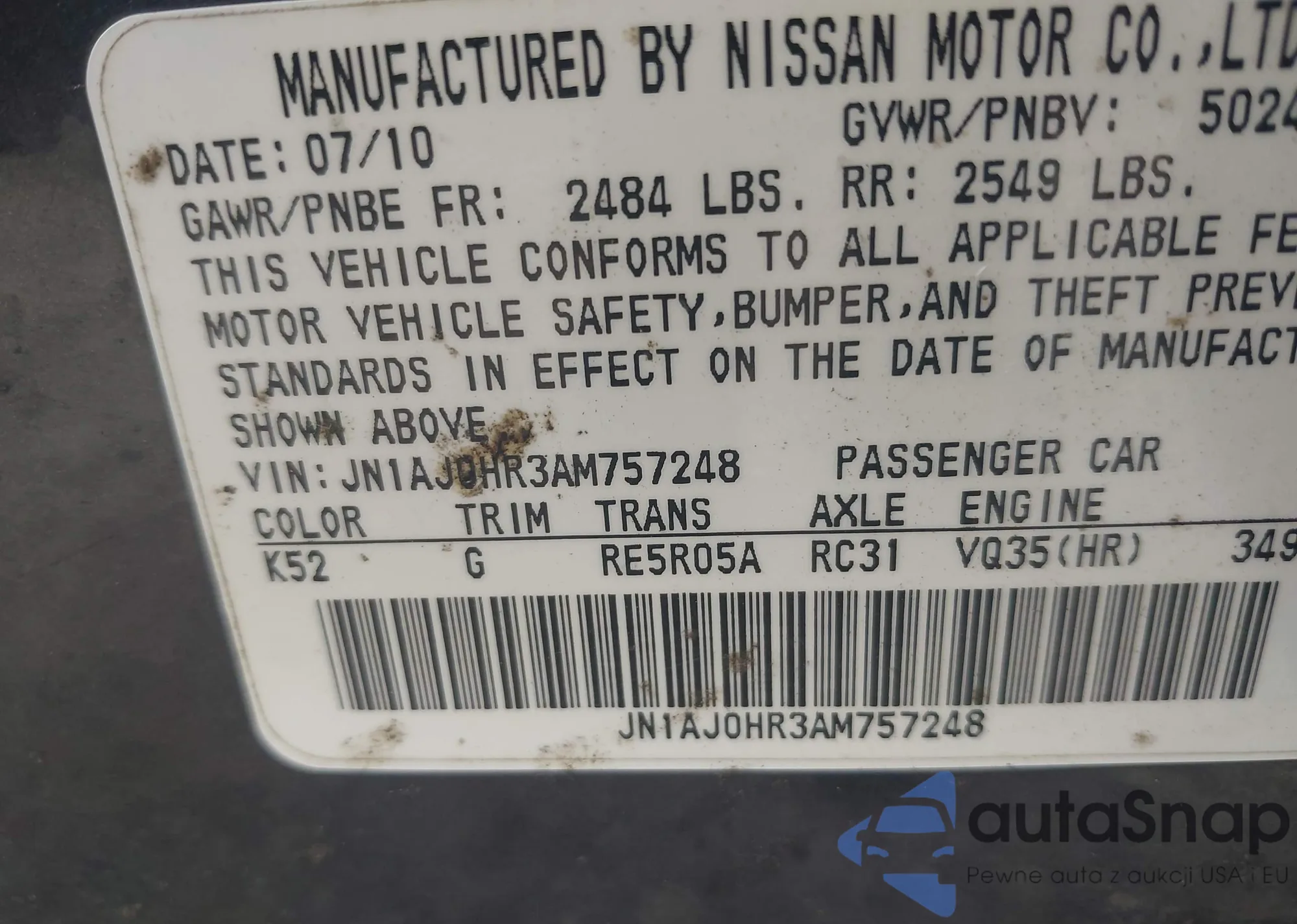 - VIN JN1AJ0HR3AM757248