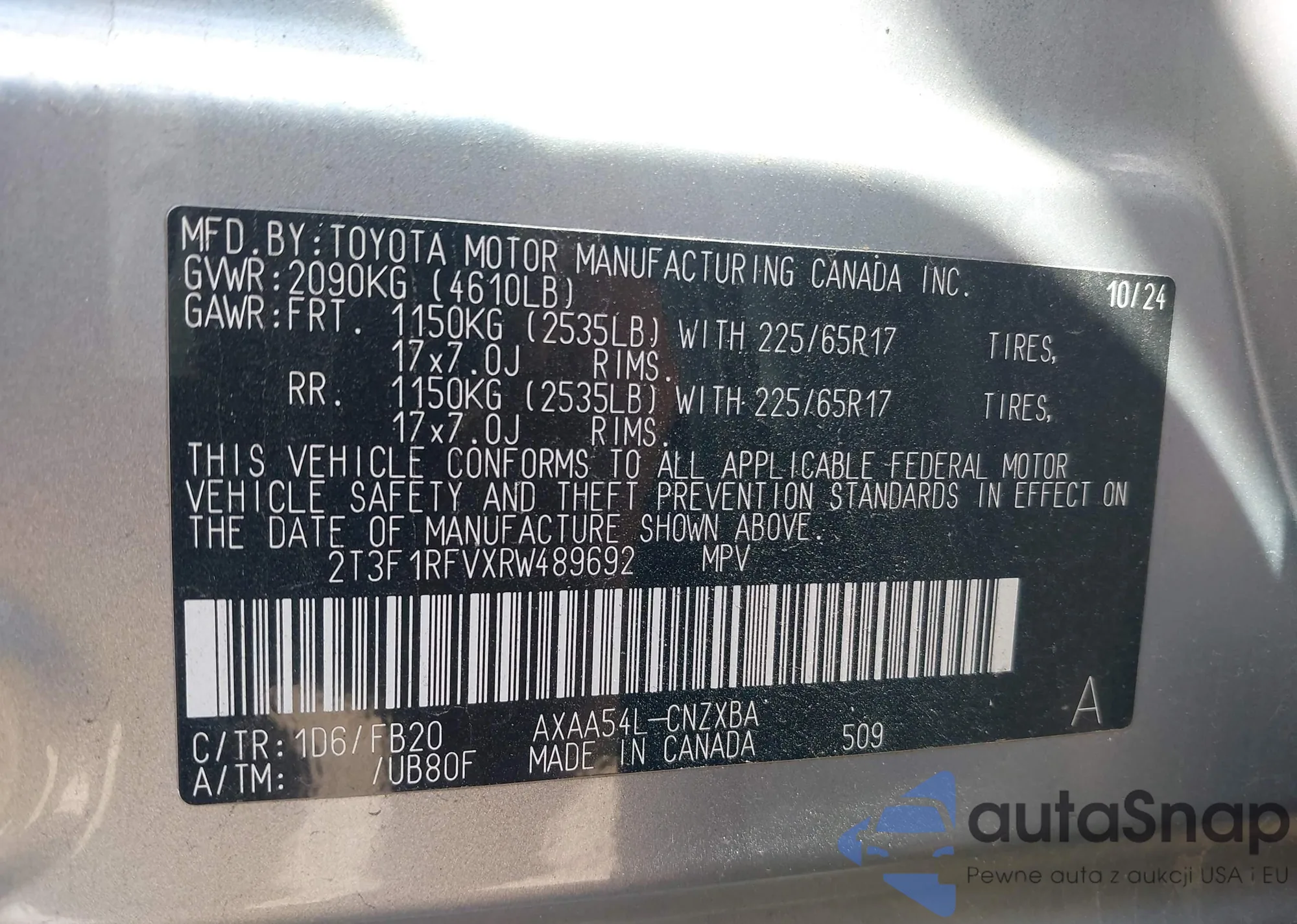 • VIN 2T3F1RFVXRW489692