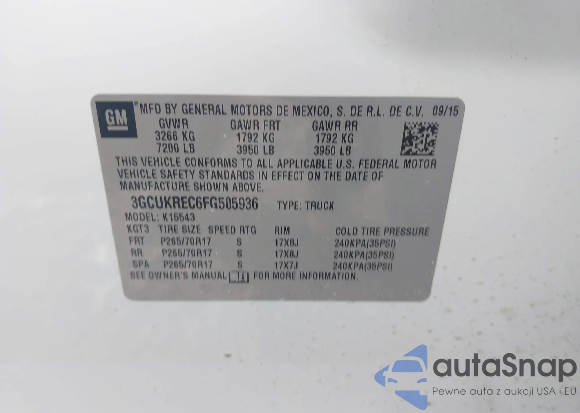• VIN 3GCUKREC6FG505936