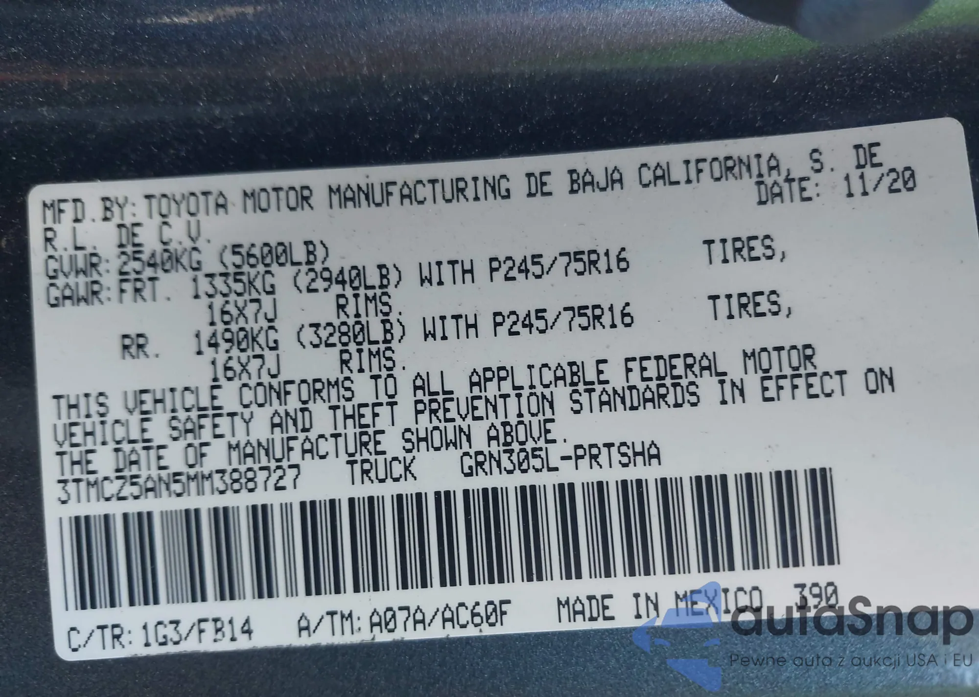 • VIN 3TMCZ5AN5MM388727
