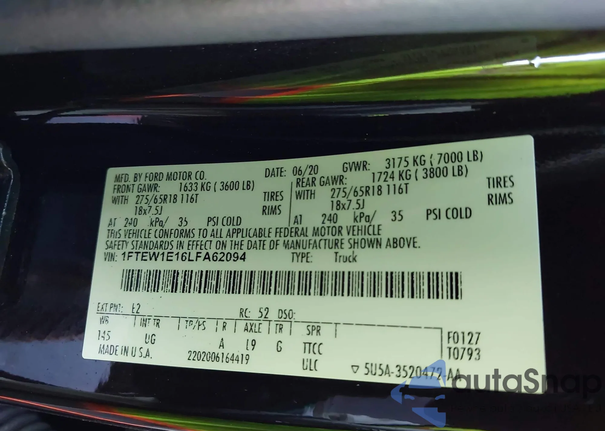 • VIN 1FTEW1E16LFA62094