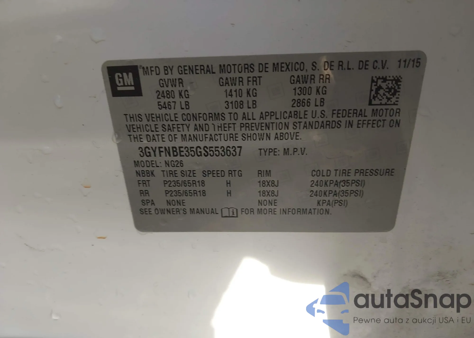 LOT: 43925632 VIN: 3GYFNBE35GS553637