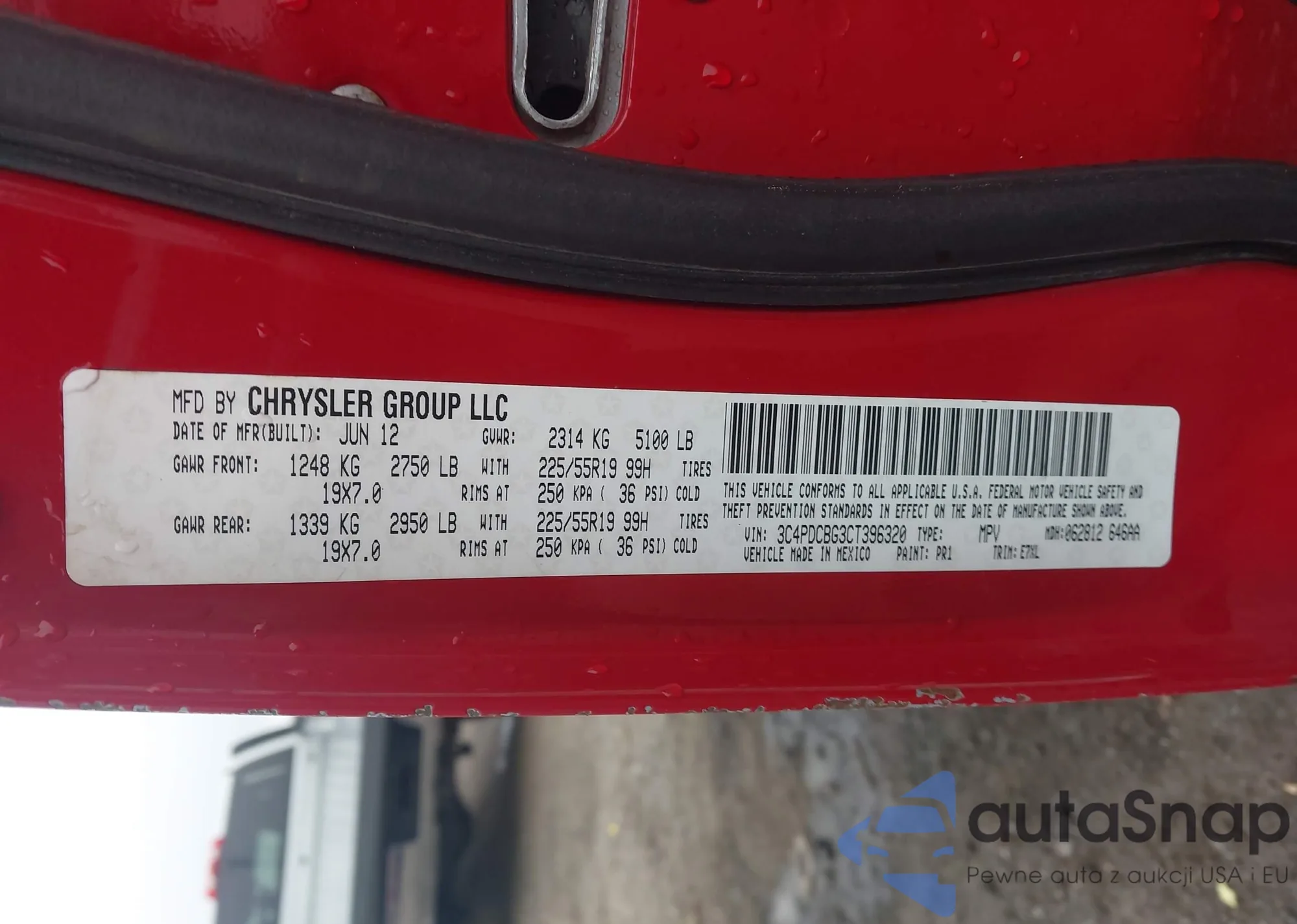 LOT: 43996881 VIN: 3C4PDCBG3CT396320