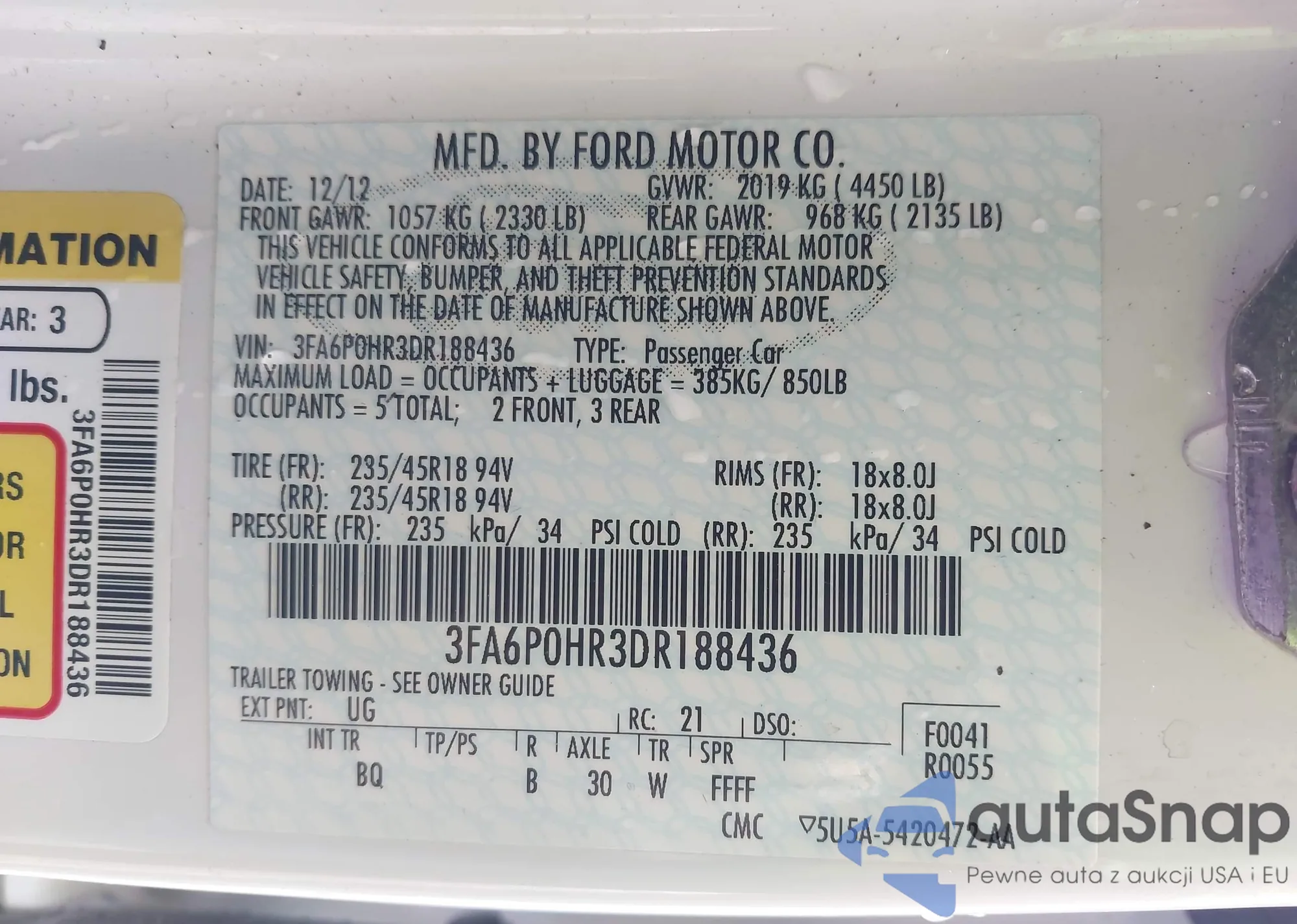 • VIN 3FA6P0HR3DR188436