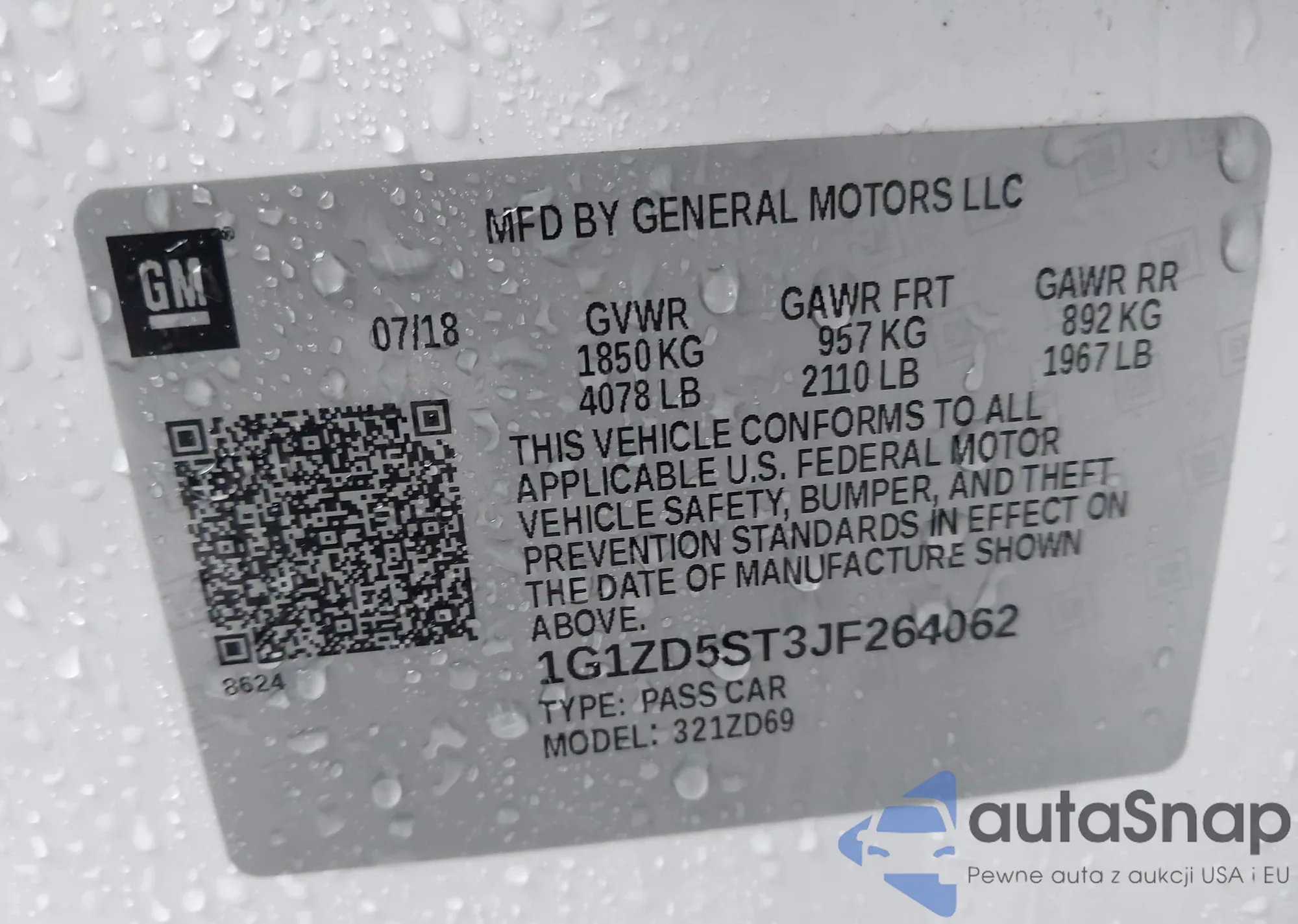 LOT: 43756564 VIN: 1G1ZD5ST3JF264062