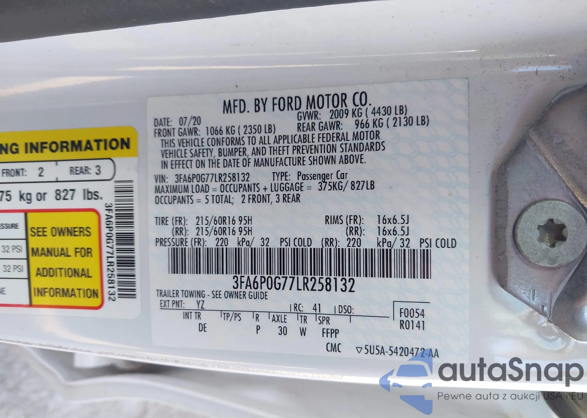 • VIN 3FA6P0G77LR258132