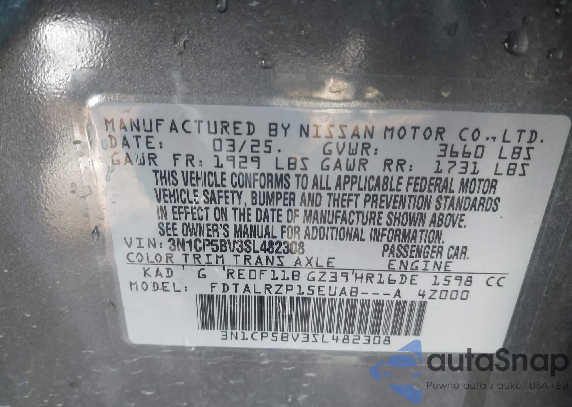 • VIN 3N1CP5BV3SL482308