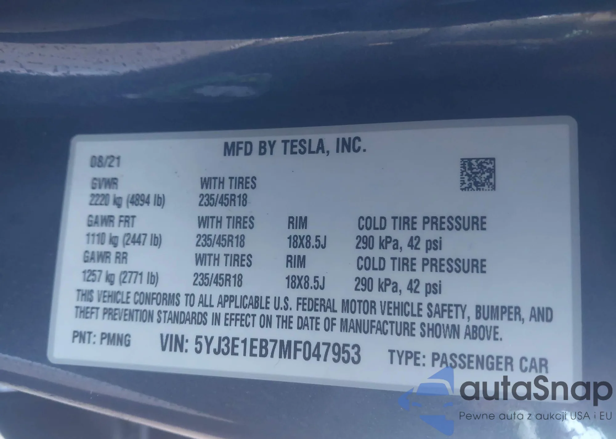 • VIN 5YJ3E1EB7MF047953