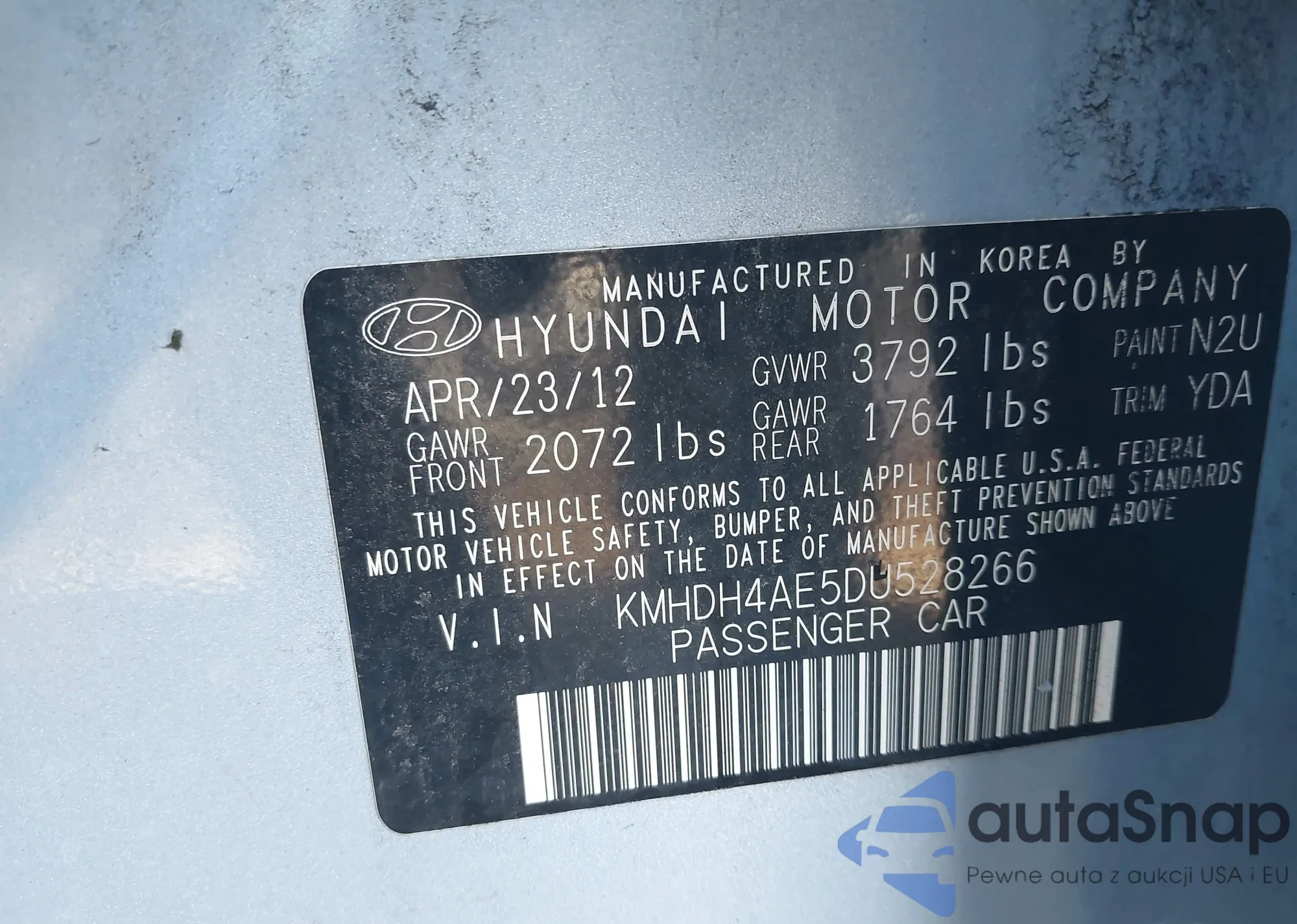 LOT: 44221061 VIN: KMHDH4AE5DU528266