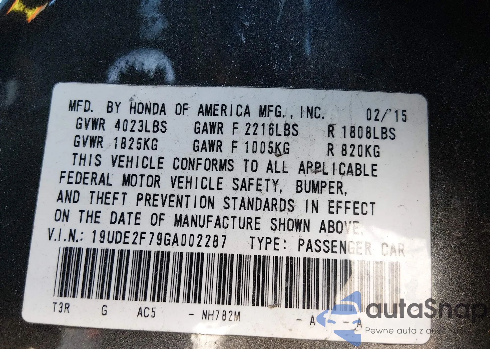 • VIN 19UDE2F79GA002287