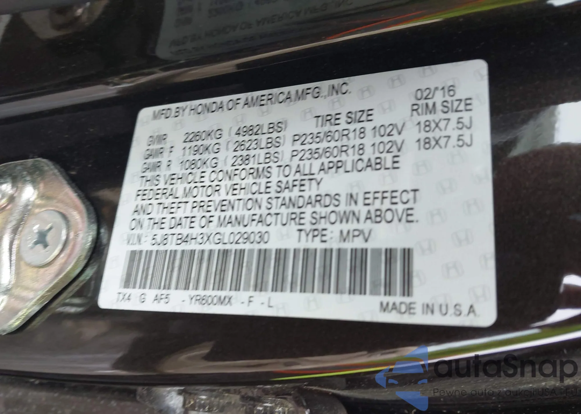 • VIN 5J8TB4H3XGL029030