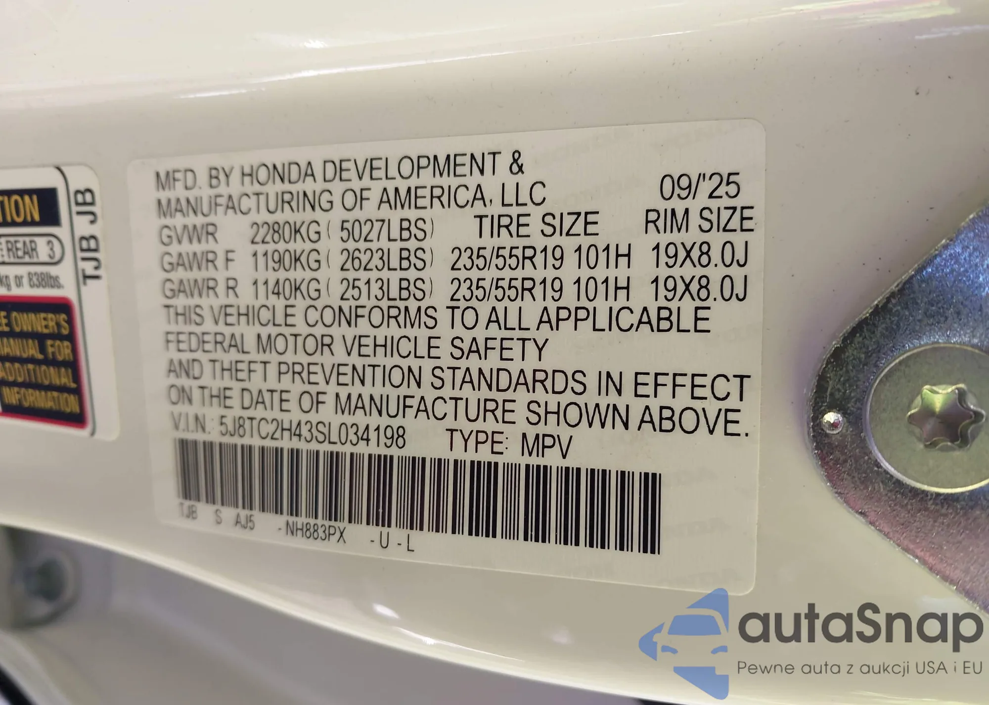 • VIN 5J8TC2H43SL034198