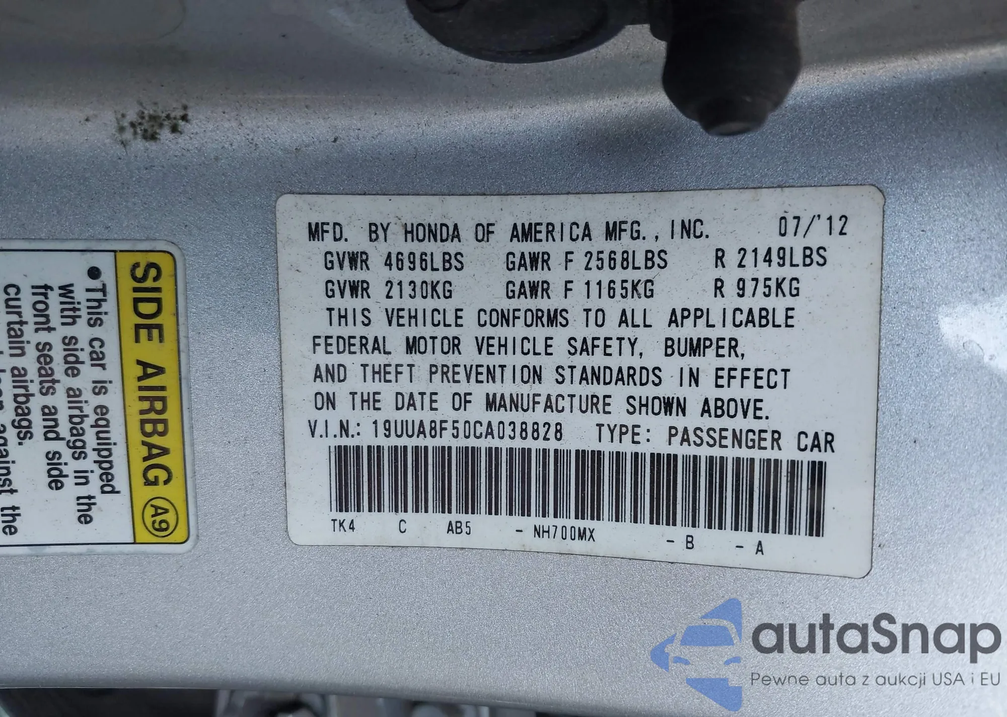LOT: 38182139 VIN: 19UUA8F50CA038828