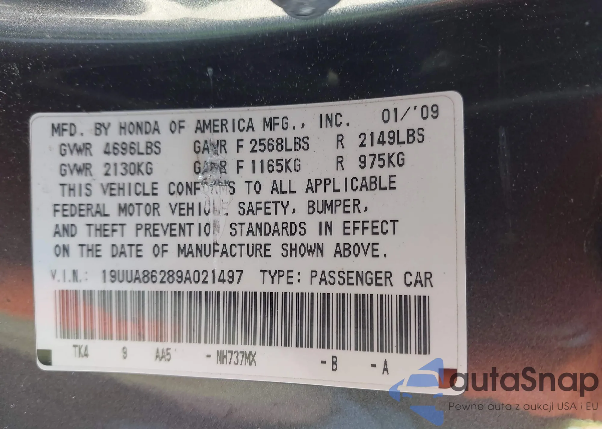 LOT: 44265957 VIN: 19UUA86249A017852