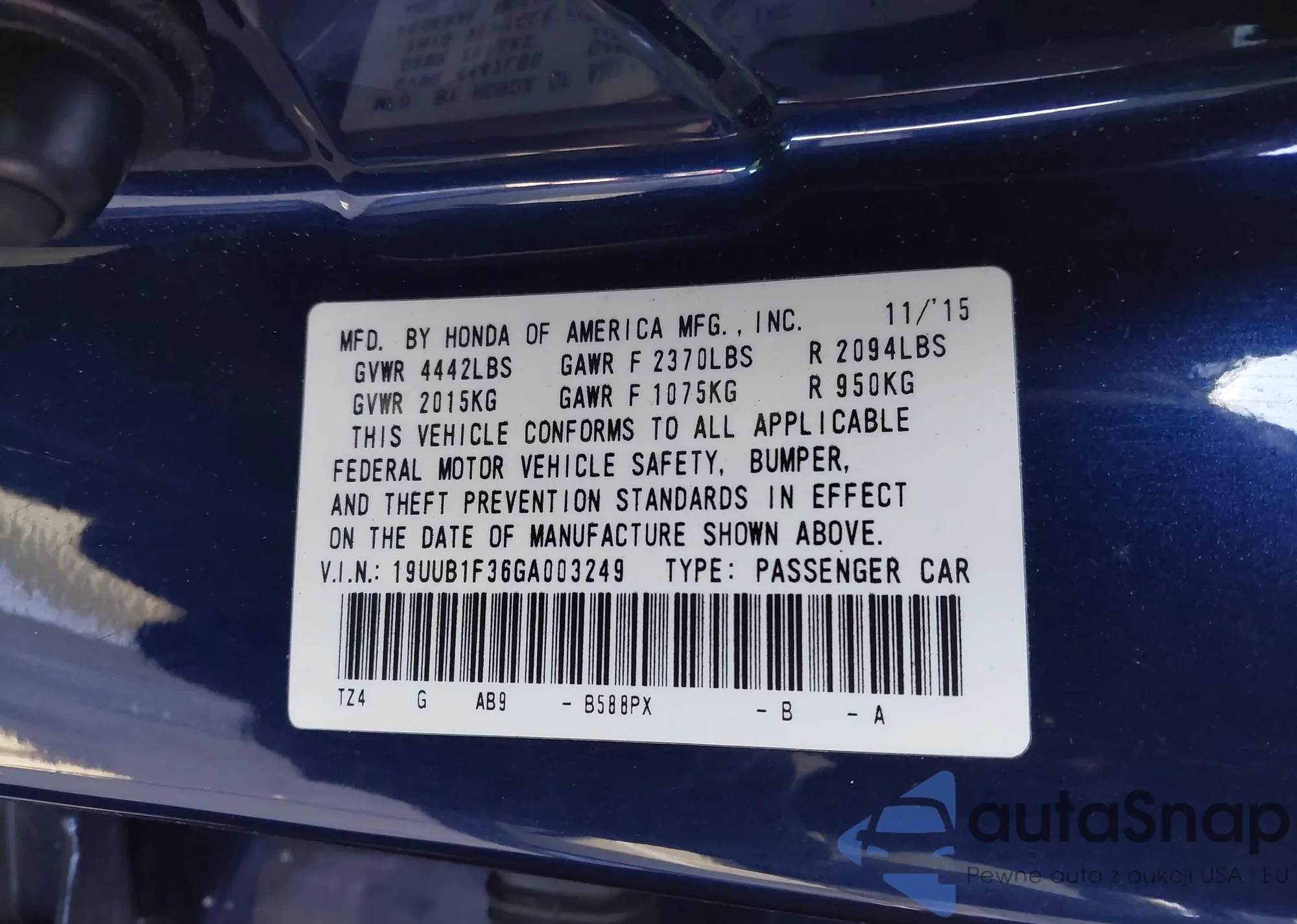 • VIN 19UUB1F36GA003249