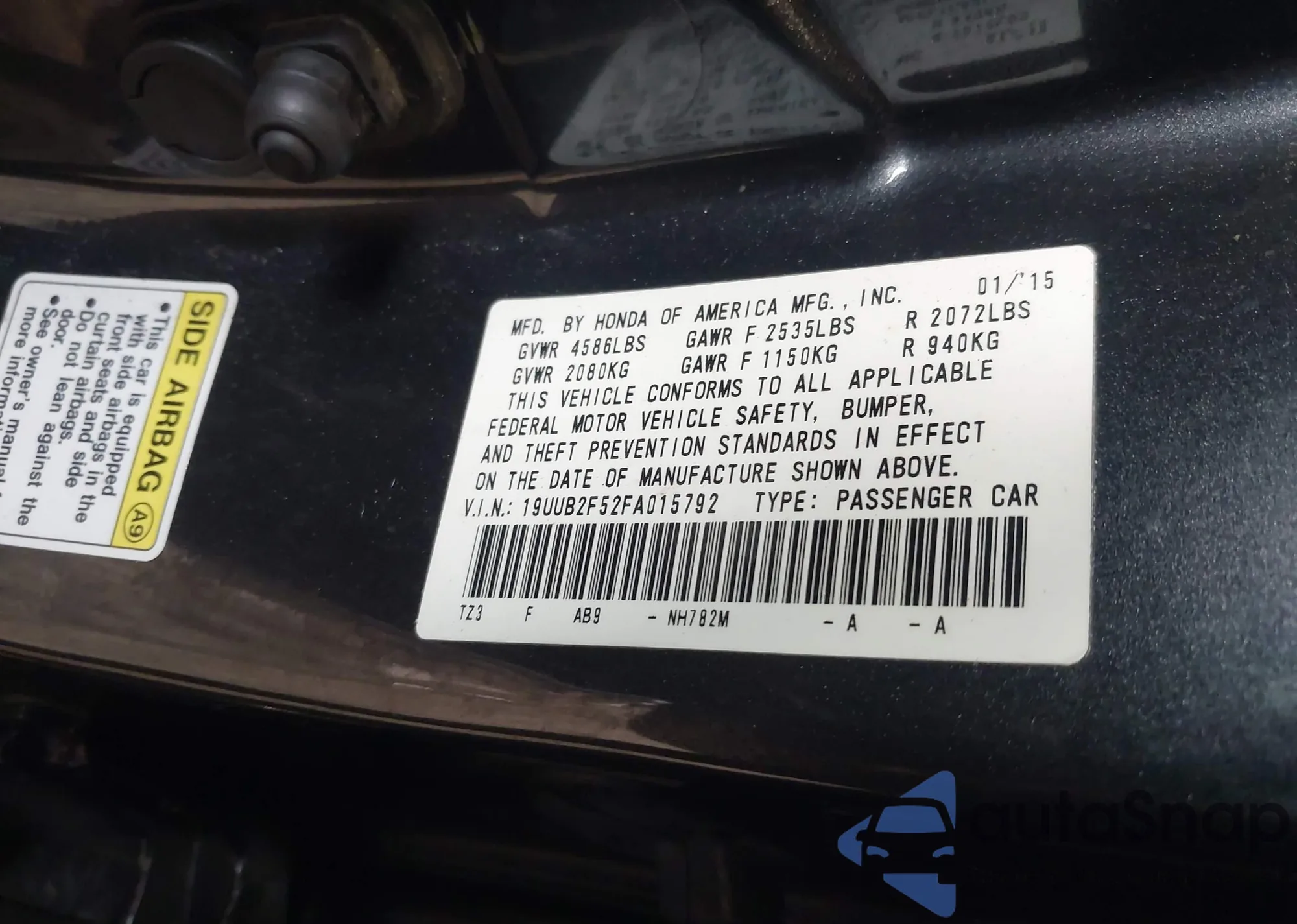 • VIN 19UUB2F52FA015792