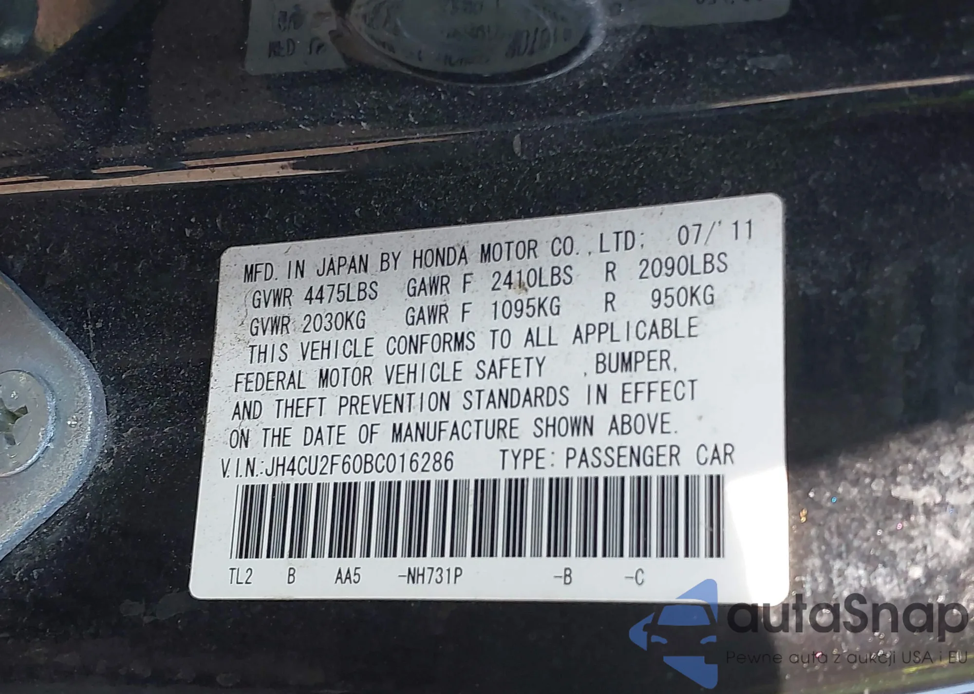 • VIN JH4CU2F60BC016286