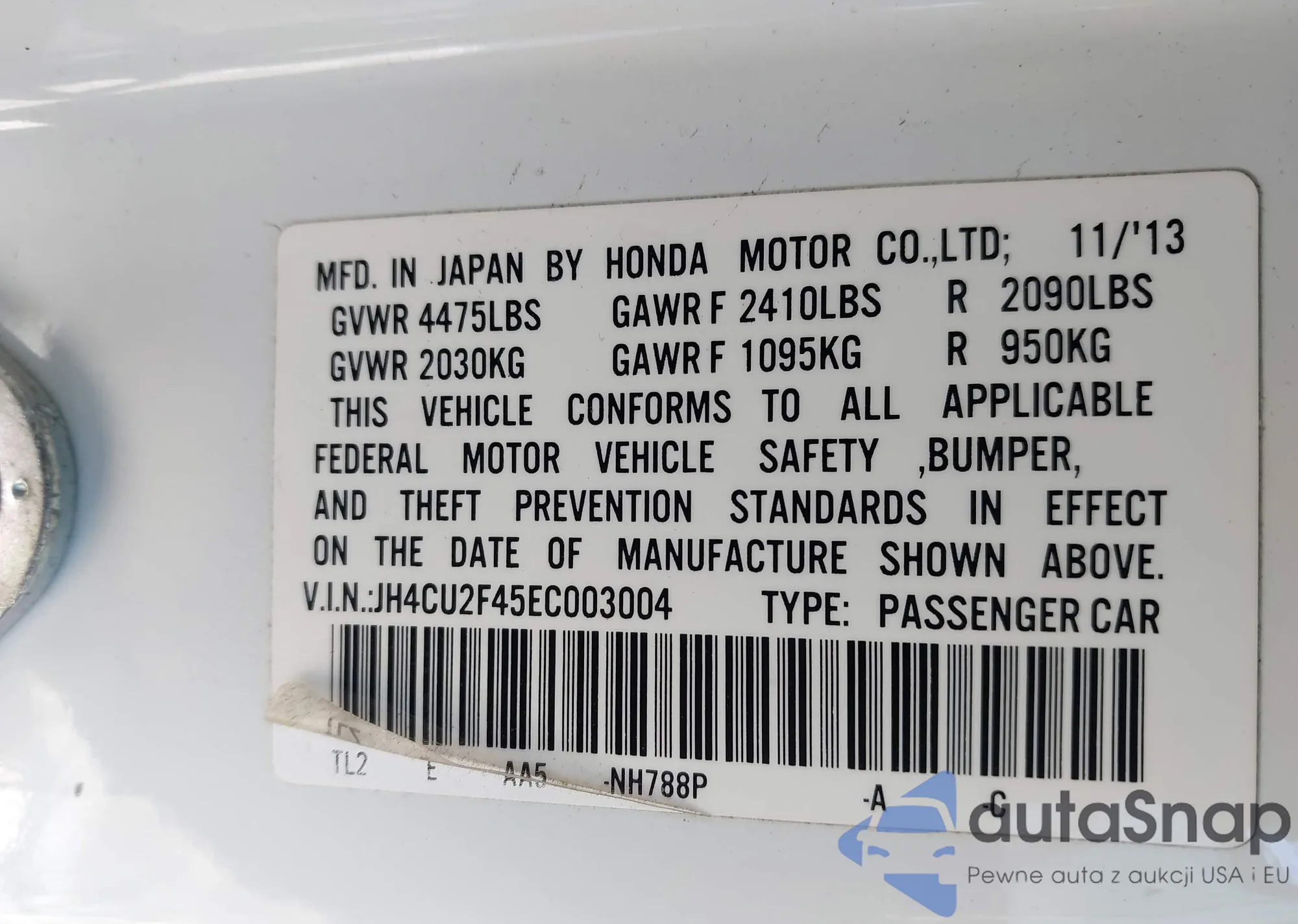 • VIN JH4CU2F41DC000373