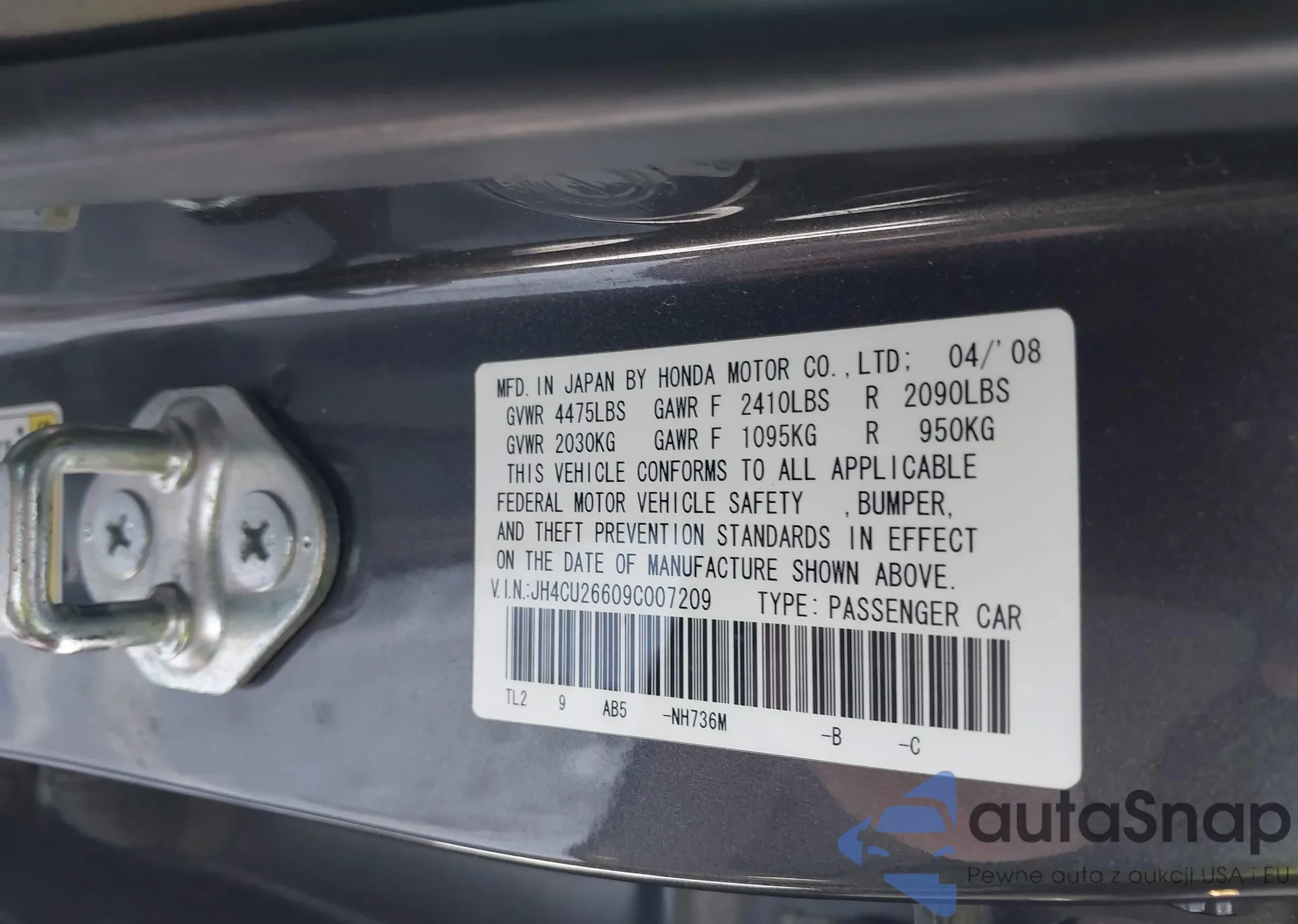 • VIN JH4CU26609C007209