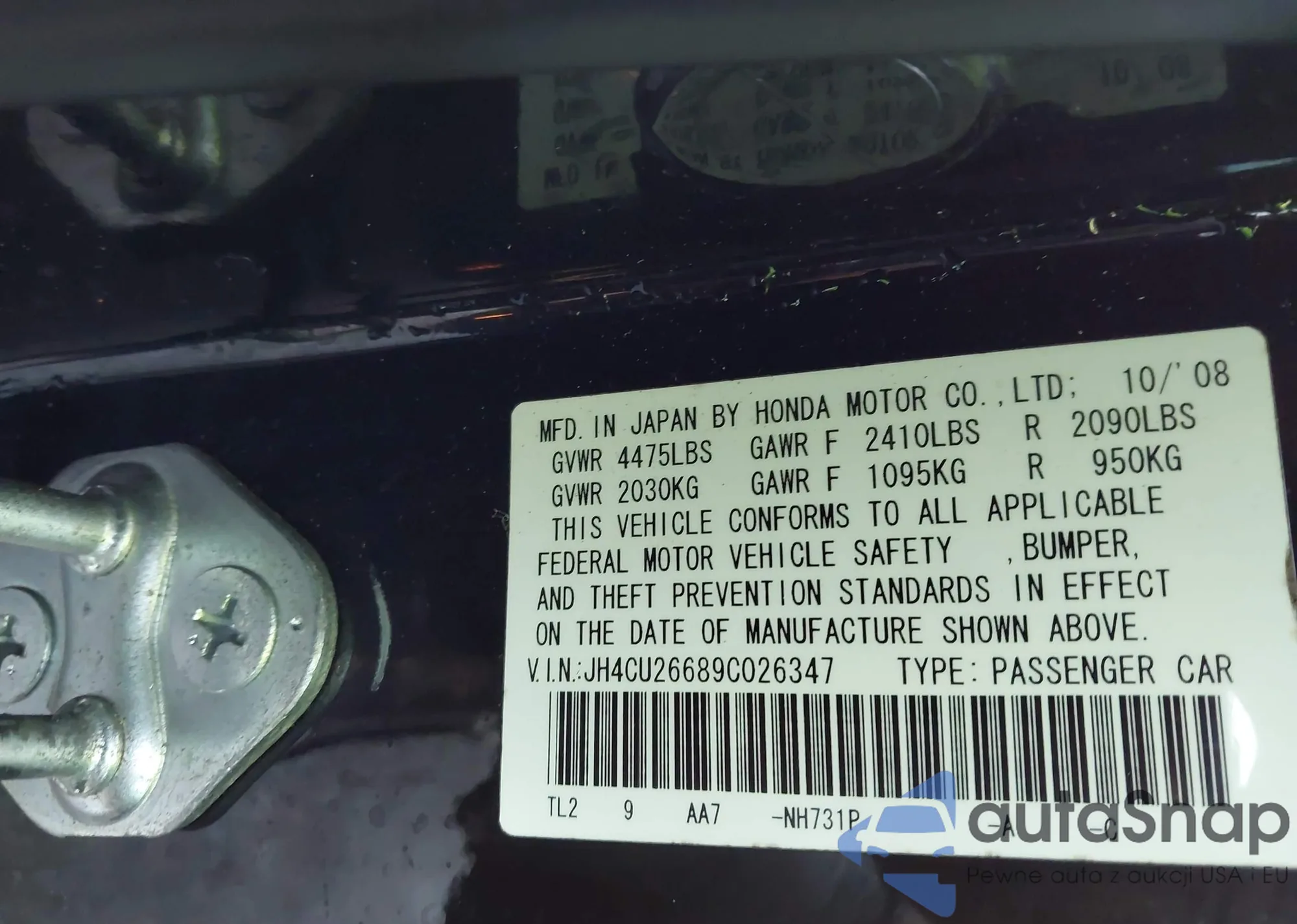 LOT: 44037897 VIN: JH4CU26689C026347