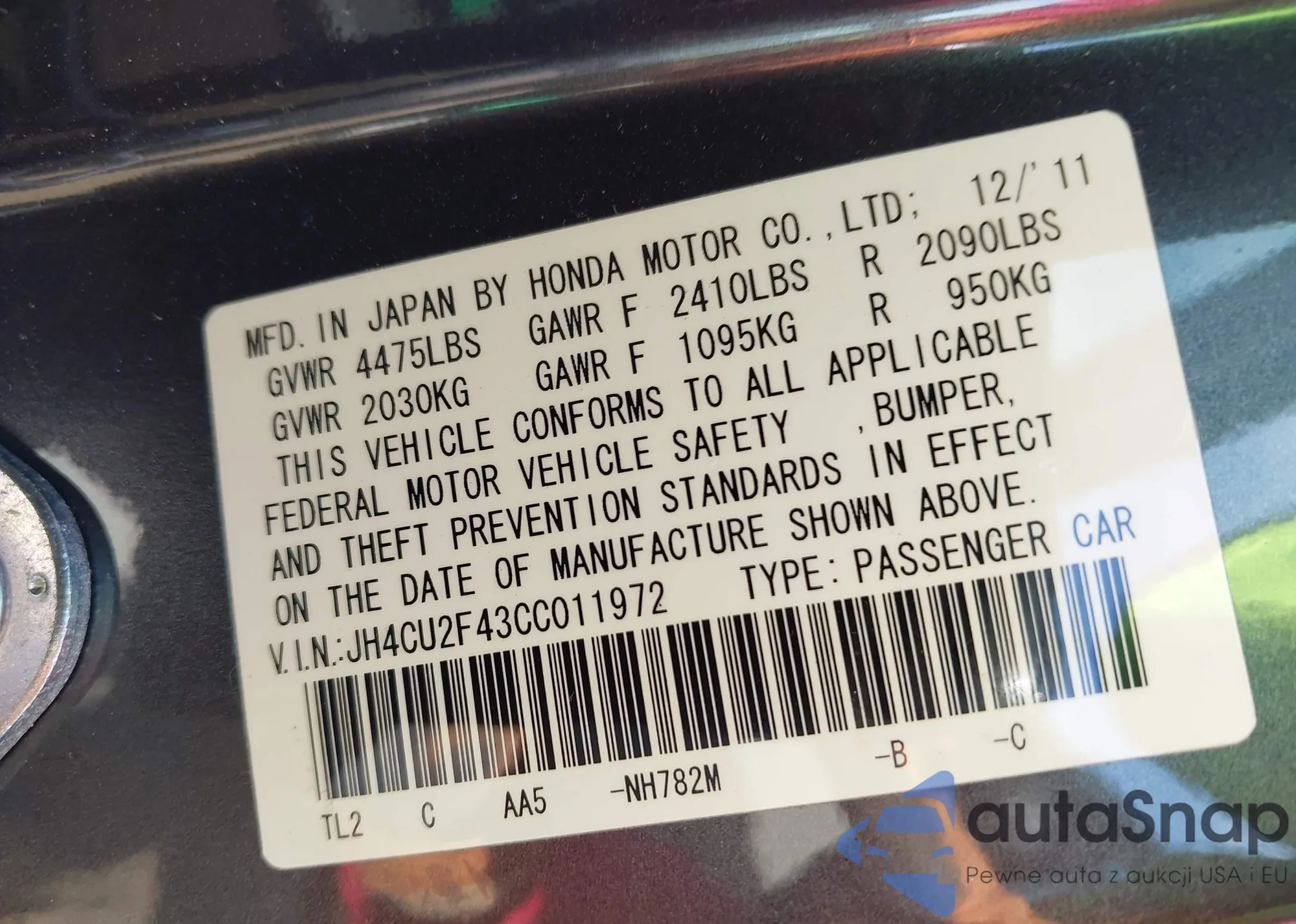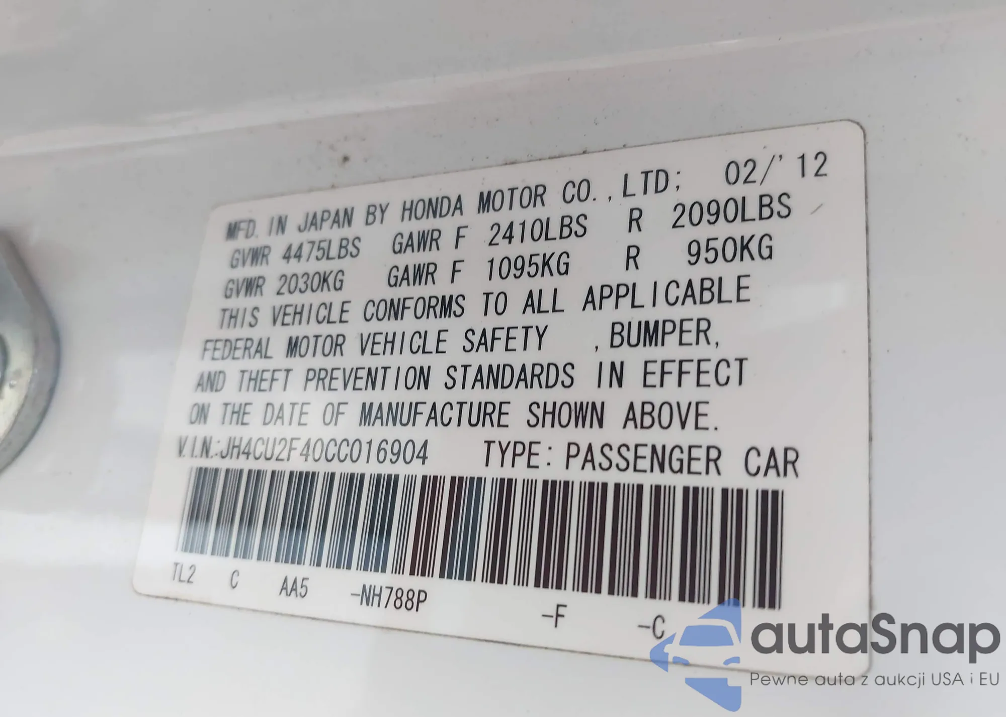 • VIN JH4CW2H67CC002698