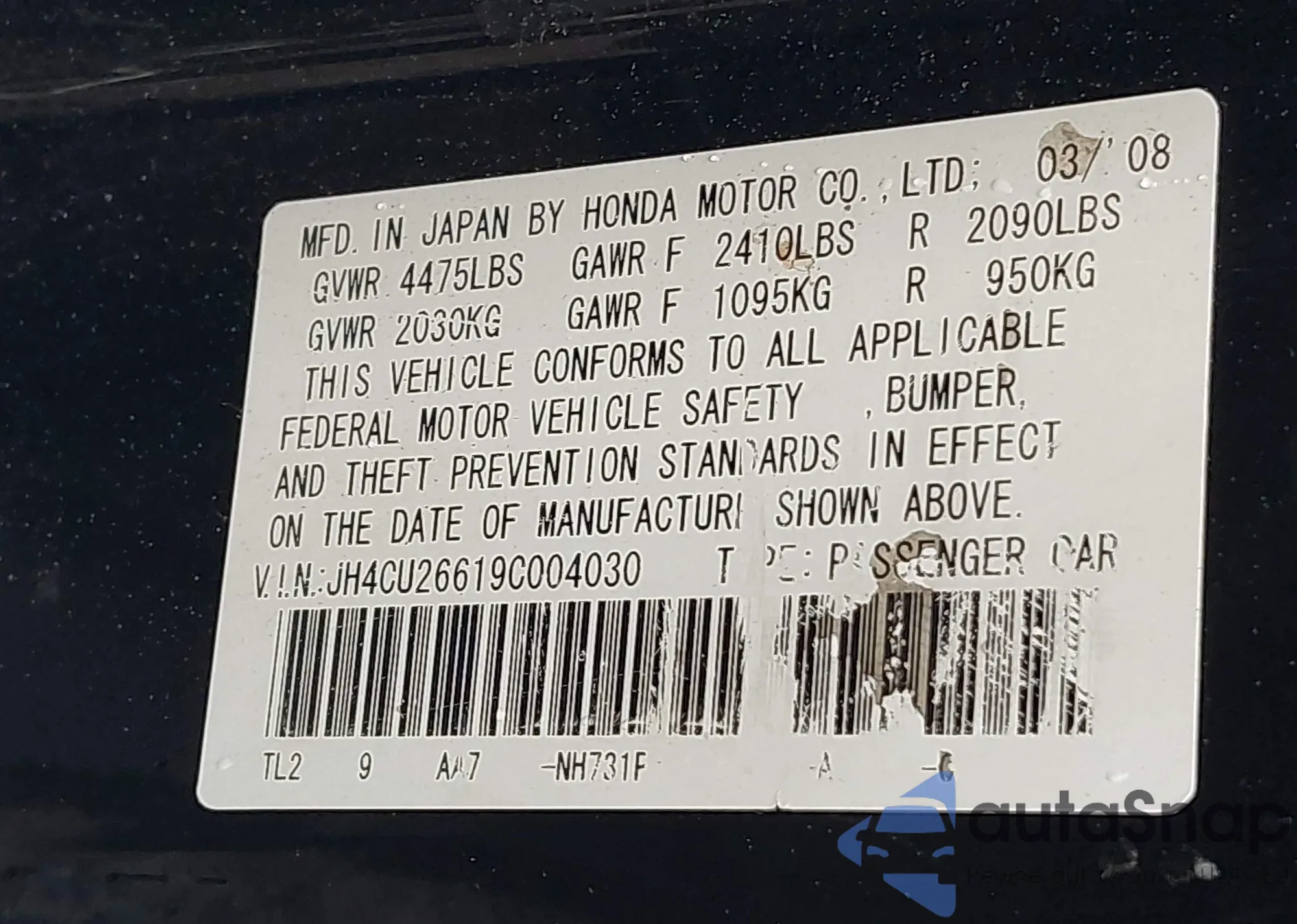• VIN JH4CU26619C004030