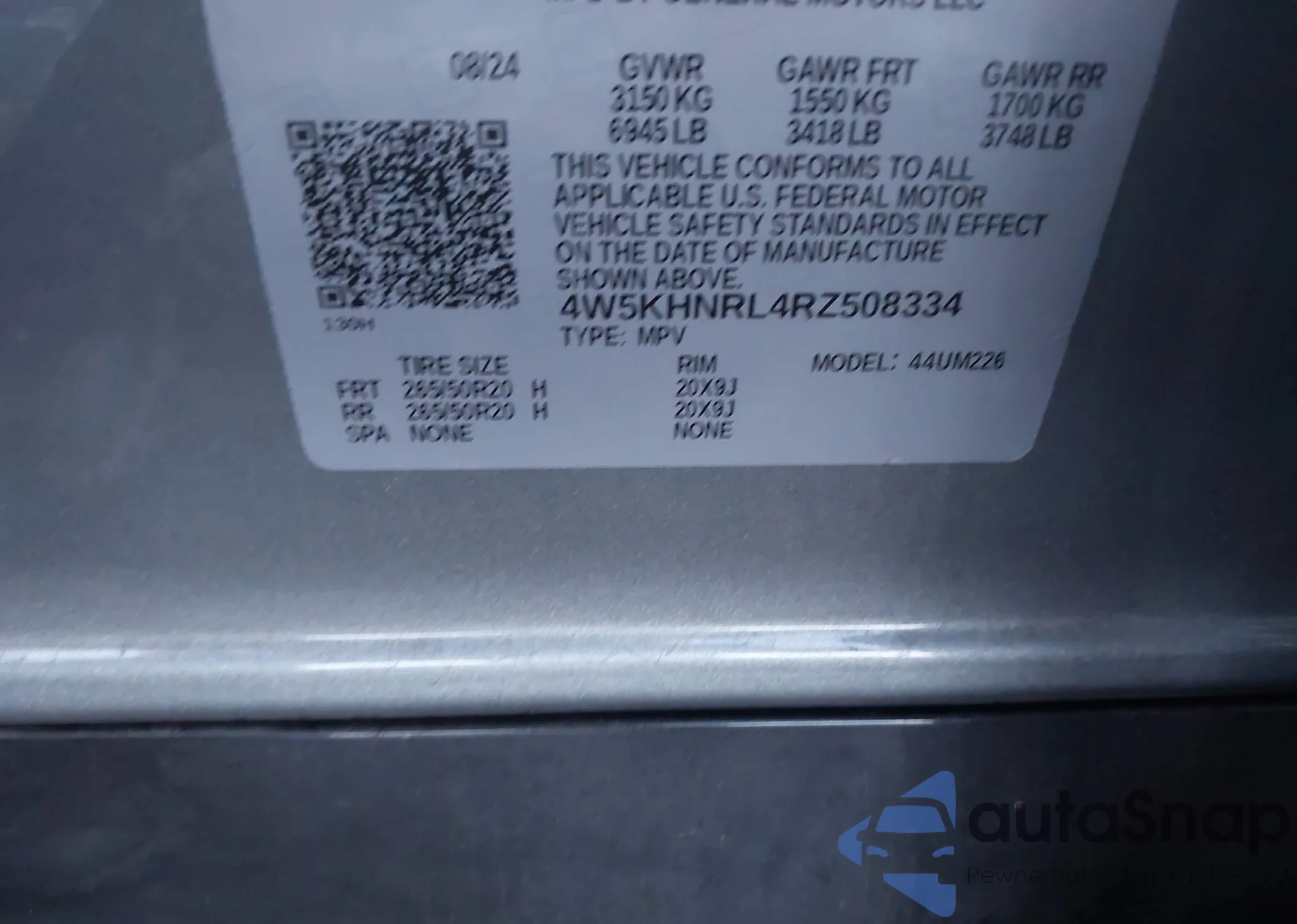 • VIN 4W5KHNRL4RZ508334