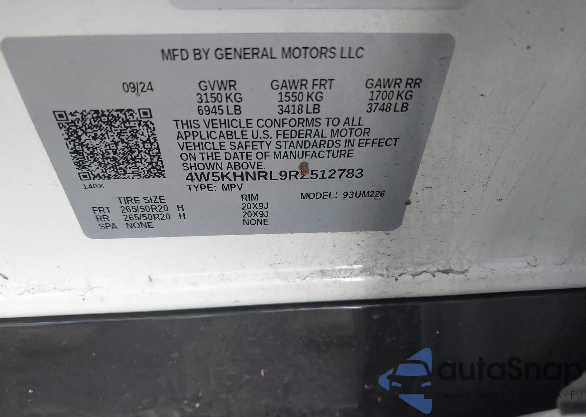 • VIN 4W5XHPRLXRZ506993