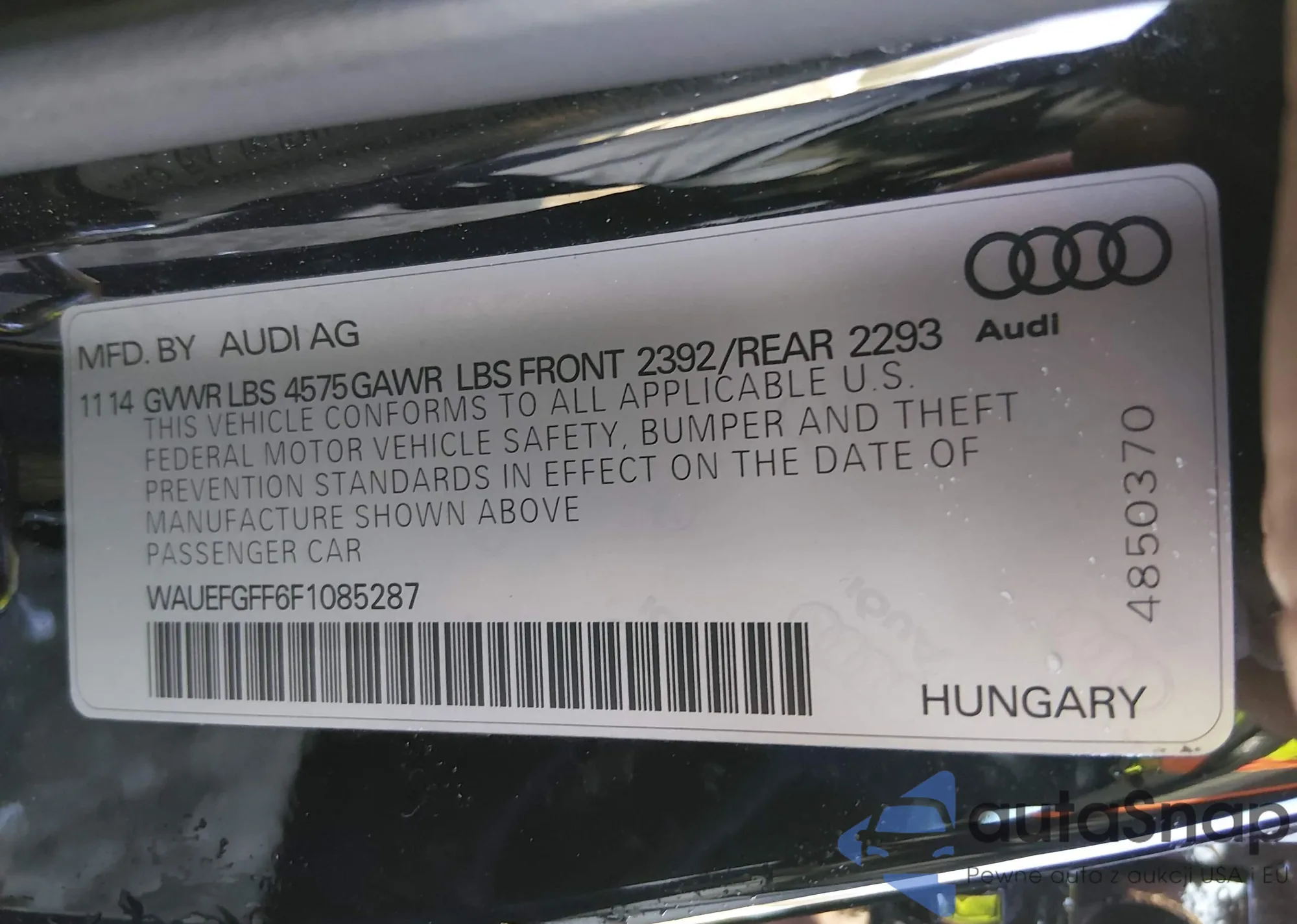 LOT: 44386836 VIN: WAUEFGFF6F1085287