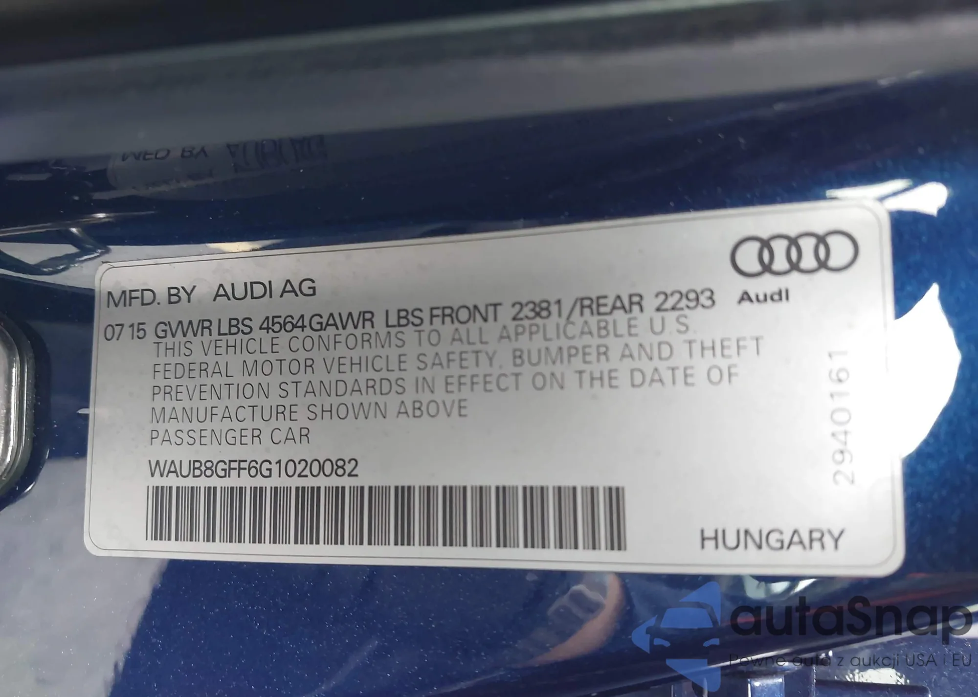 LOT: 44388327 VIN: WAUB8GFF6G1020082