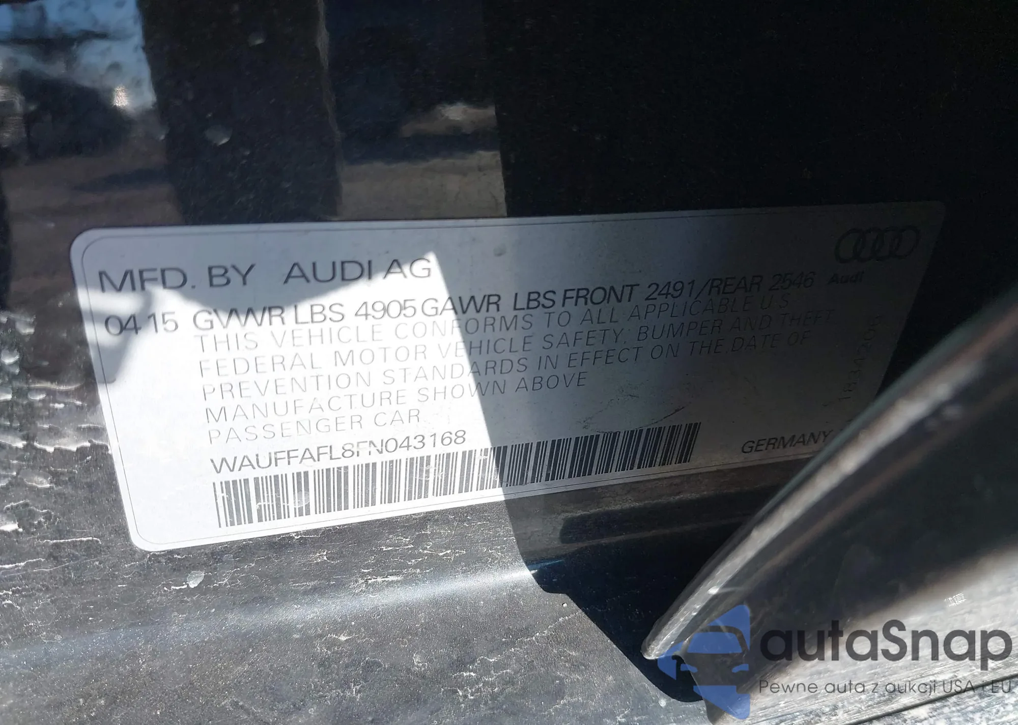 LOT: 43802025 VIN: WAUFFAFL8FN043168