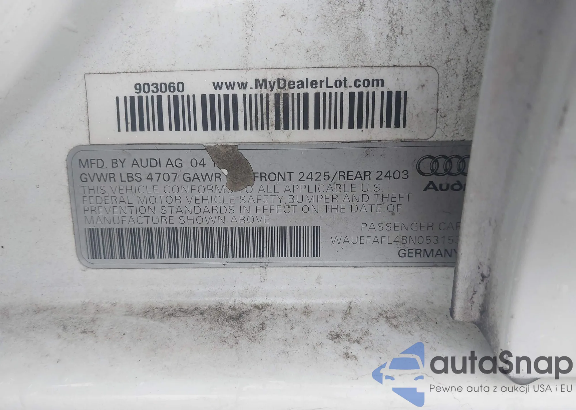 • VIN WAUEFAFL4BN053153