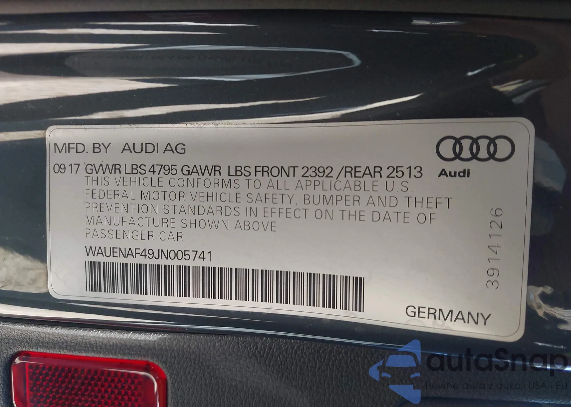 LOT: 44174884 VIN: WAUENAF49JN005741