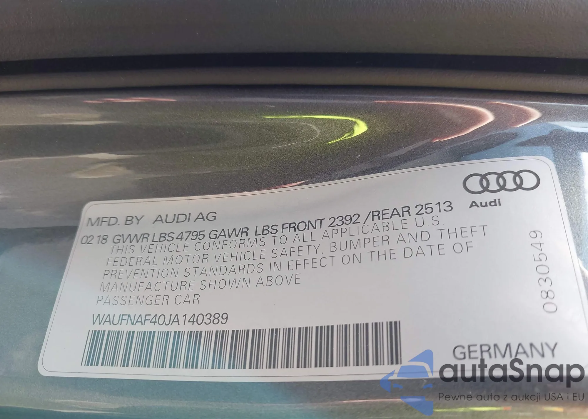 LOT: 44176158 VIN: WAUFNAF40JA140389
