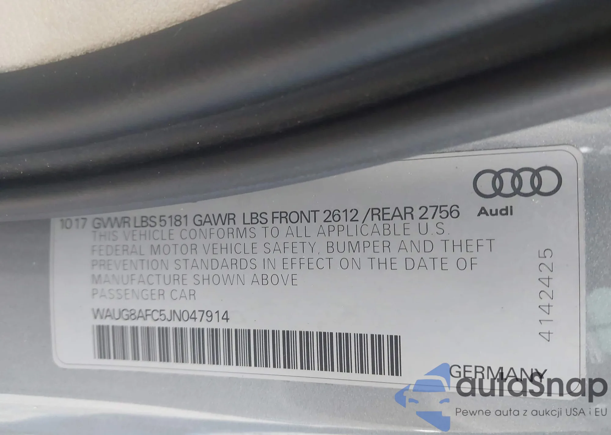 • VIN WAUG8AFC5JN047914