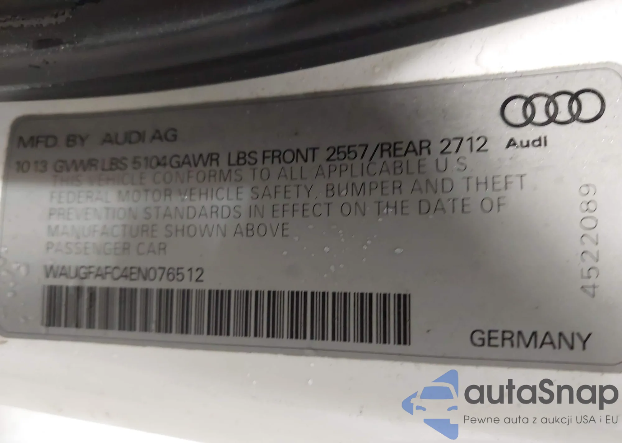 LOT: 43770859 VIN: WAUGFAFC4EN076512