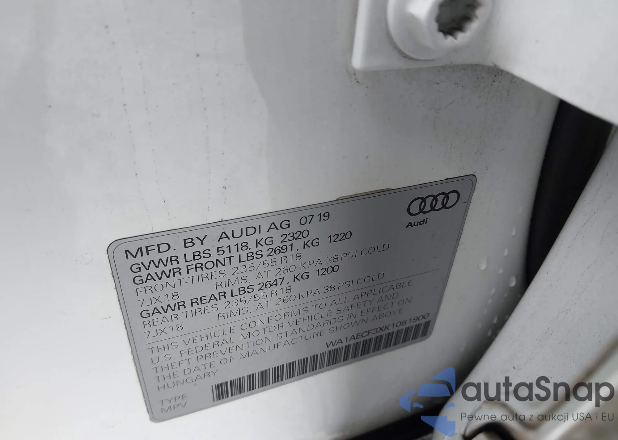 LOT: 44182962 VIN: WA1AECF3XK1081900