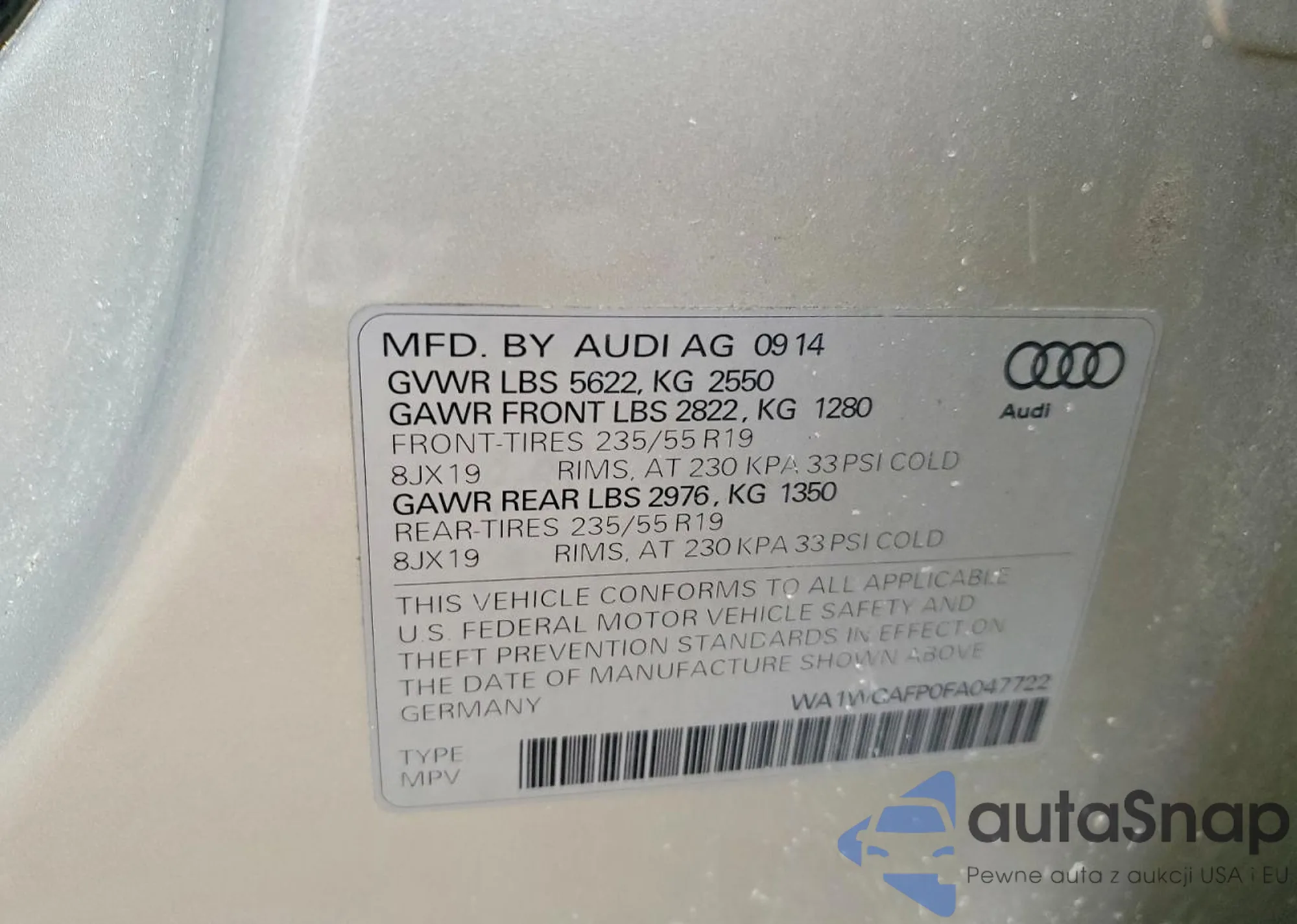 LOT: 77682325 VIN: WA1CFAFP5FA076817