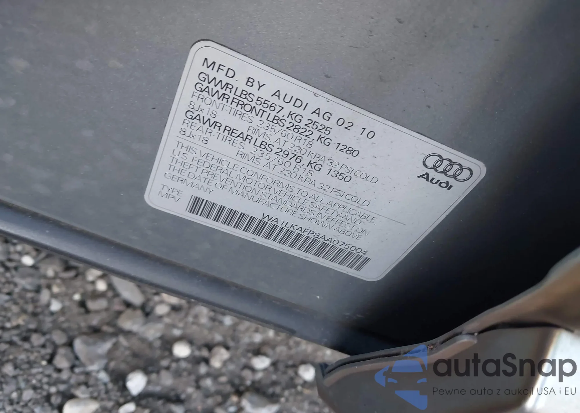 LOT: 90725225 VIN: WA1CFAFP6BA008892