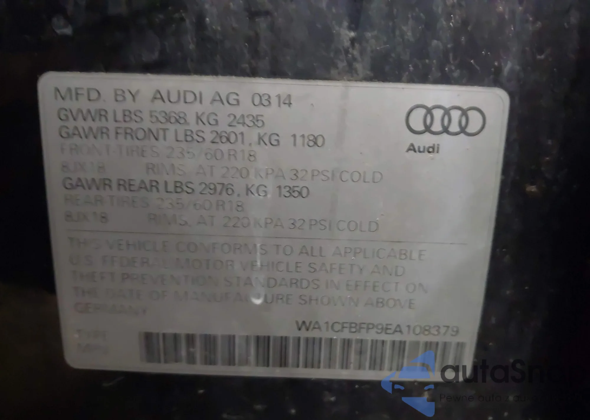 LOT: 43837909 VIN: WA1CFBFP9EA108379