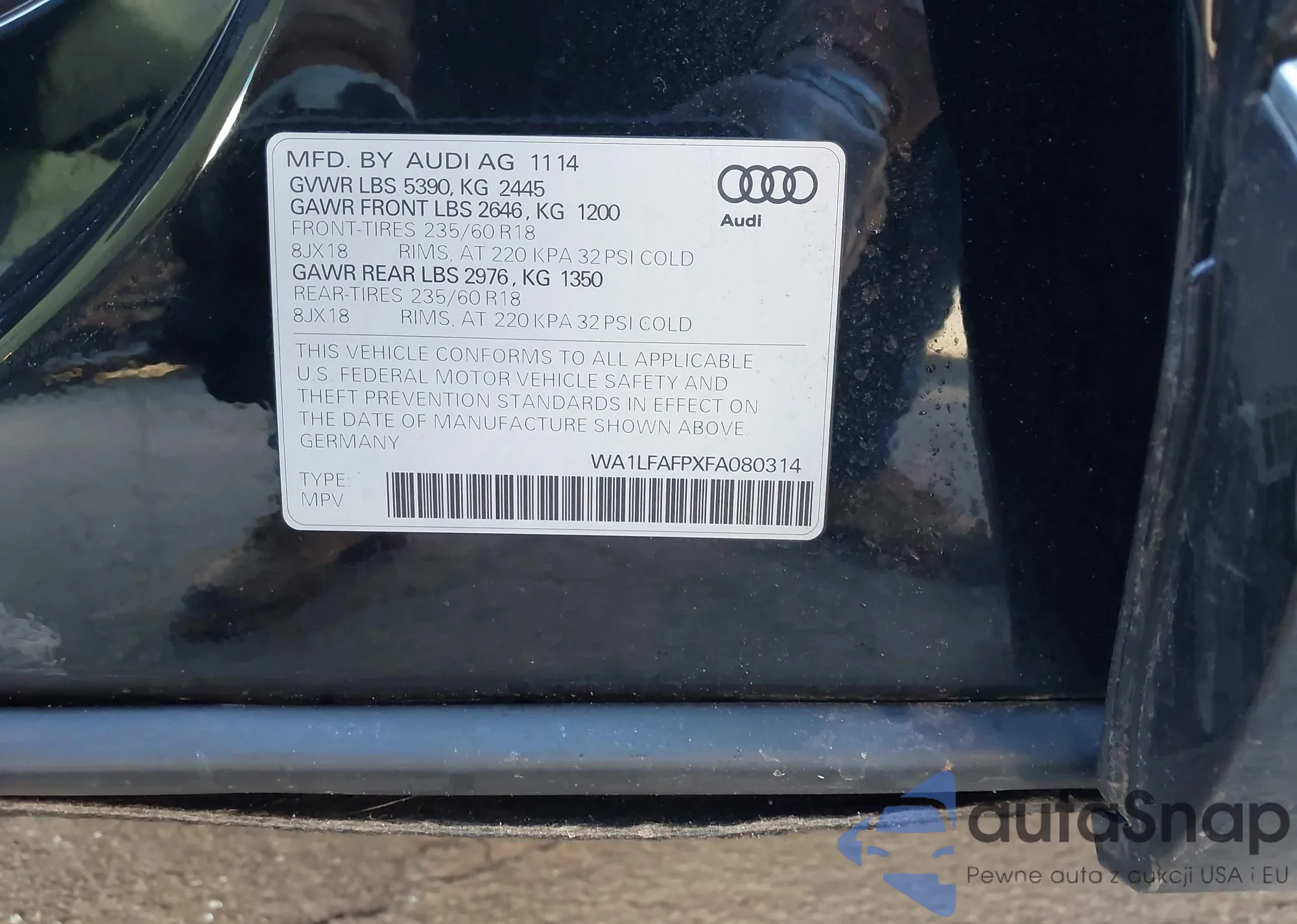 LOT: 44204729 VIN: WA1LFAFPXFA080314