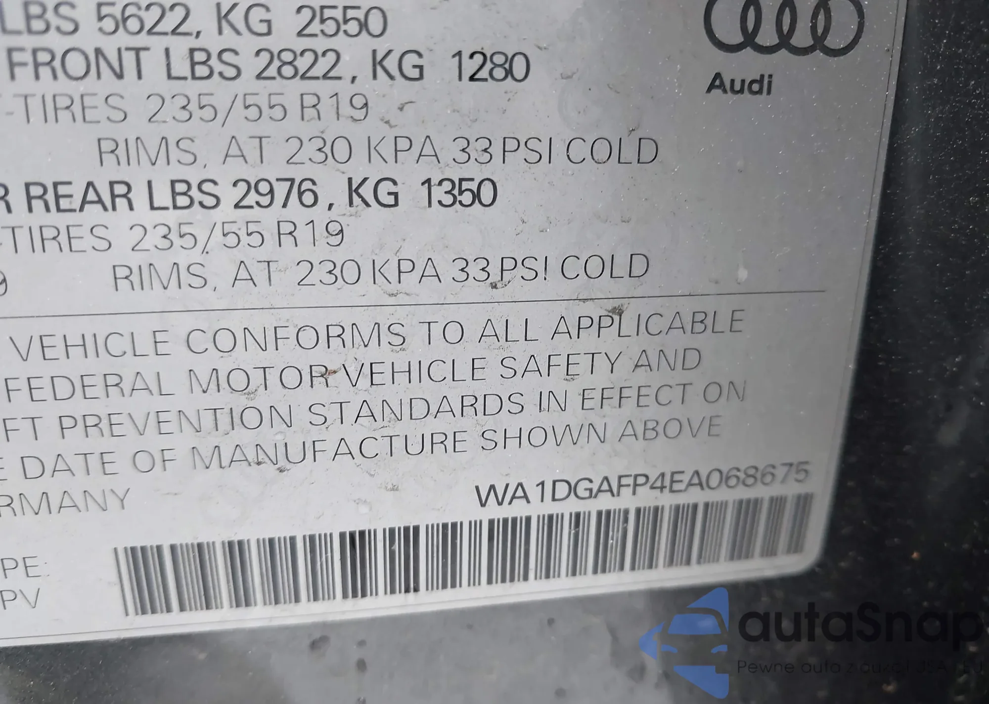 LOT: 44209329 VIN: WA1DGAFP4EA068675