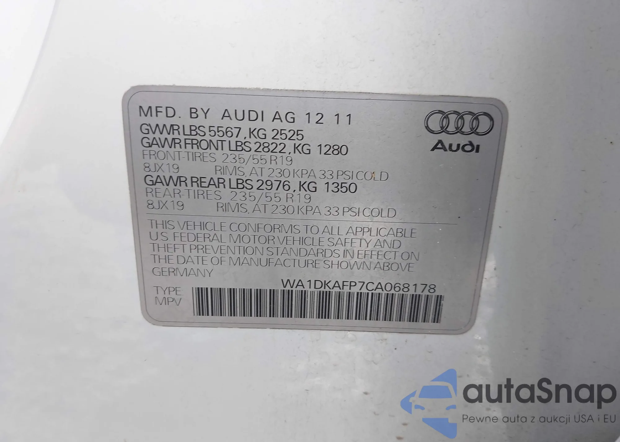 LOT: 44211137 VIN: WA1DKAFP7CA068178