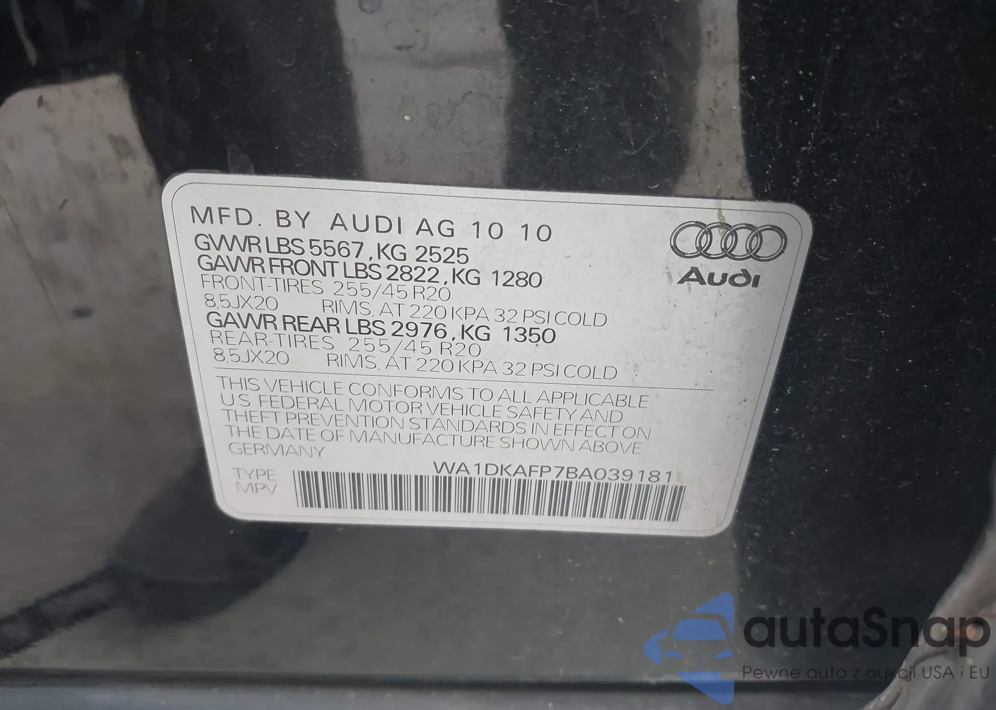 LOT: 44220709 VIN: WA1DKAFP7BA039181