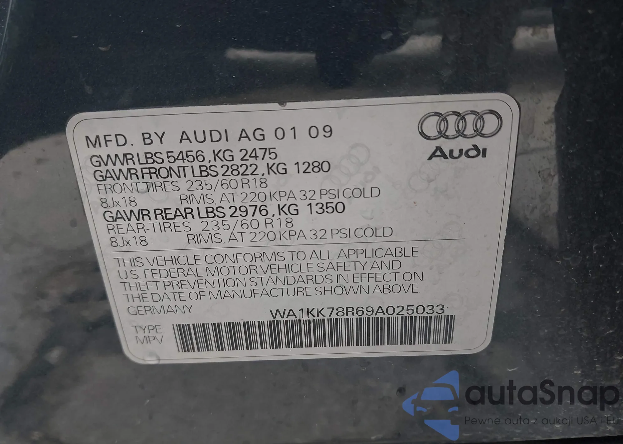 LOT: 44228413 VIN: WA1KK78R69A025033
