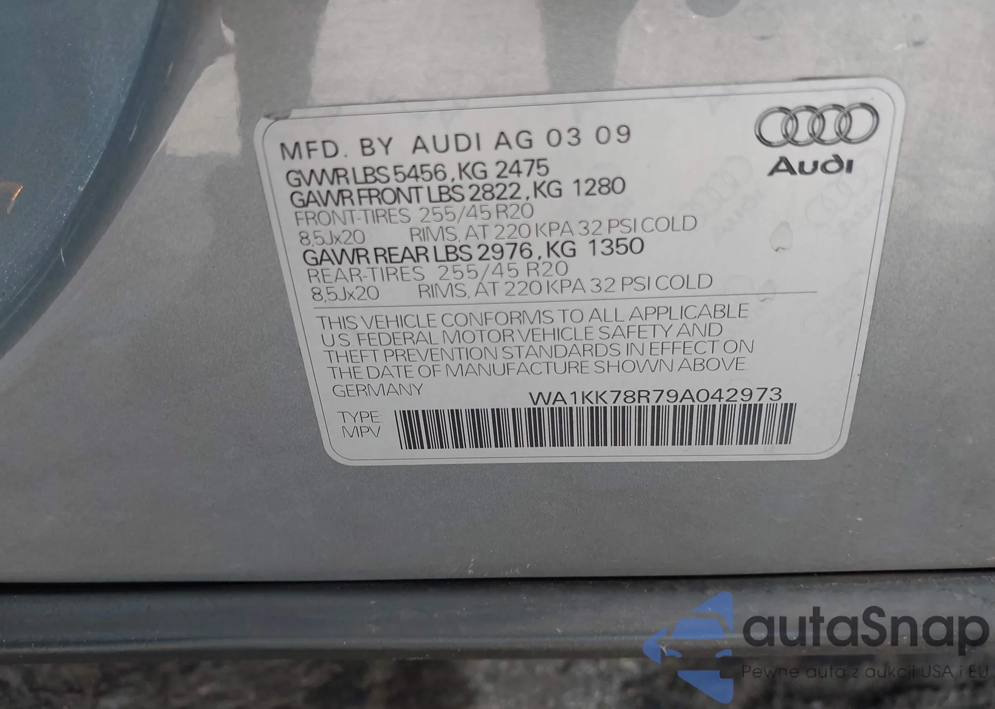LOT: 37950252 VIN: WA1KK78R79A042973